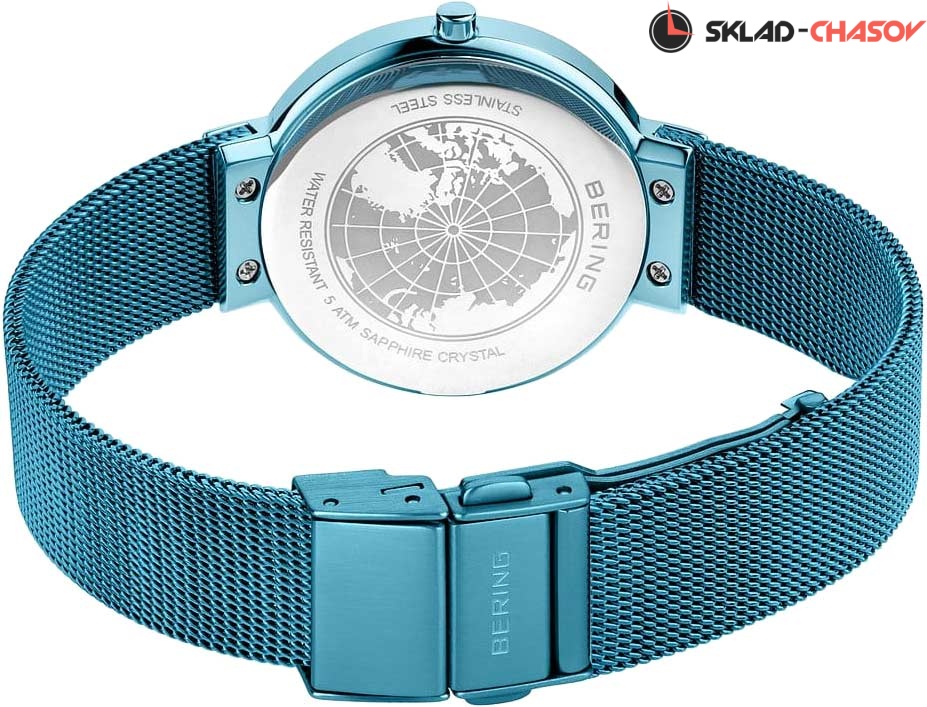 Полированный стальной корпус с голубым IP-покрытием. Диаметр 31мм.