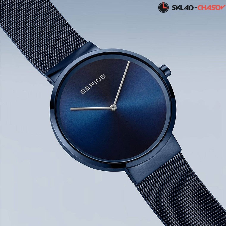 Синий циферблат с гильошированием в виде солнечных лучей.
