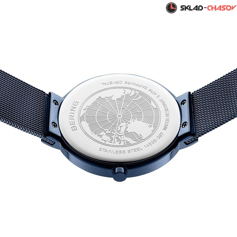 Стальной корпус с сатинажем и синим IPпокрытием. Диаметр 39мм.