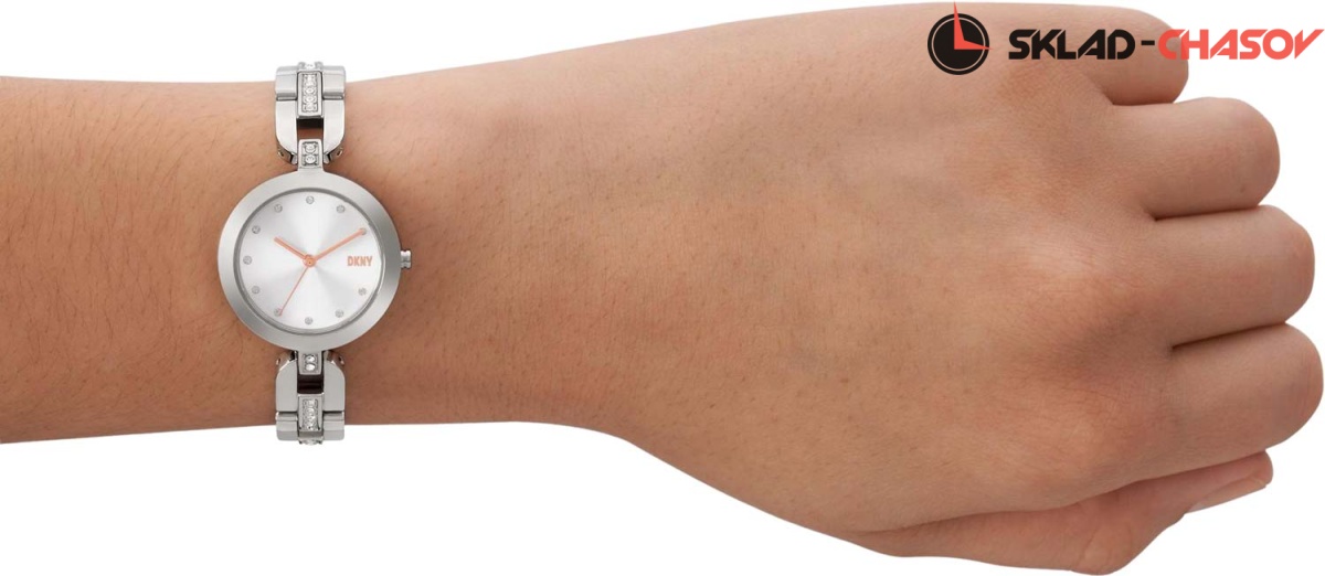 Женские часы с круглым стальным корпусом. Циферблат выполнен по технологии Sunray (солнечные лучи) и украшен логотипом бренда в положении 3 часа. Метки в виде точек, инкрустированных кристаллами. Стальной браслет с ювелирной застежкой.