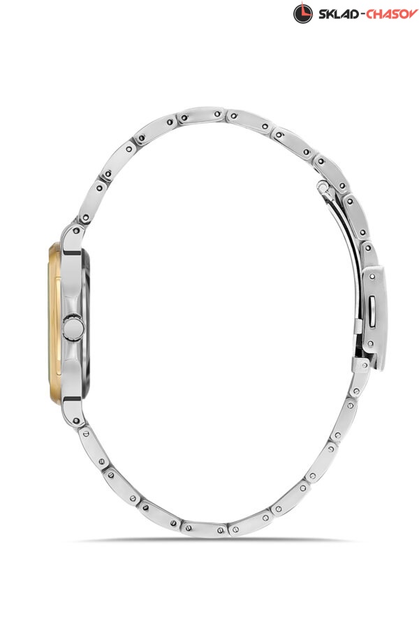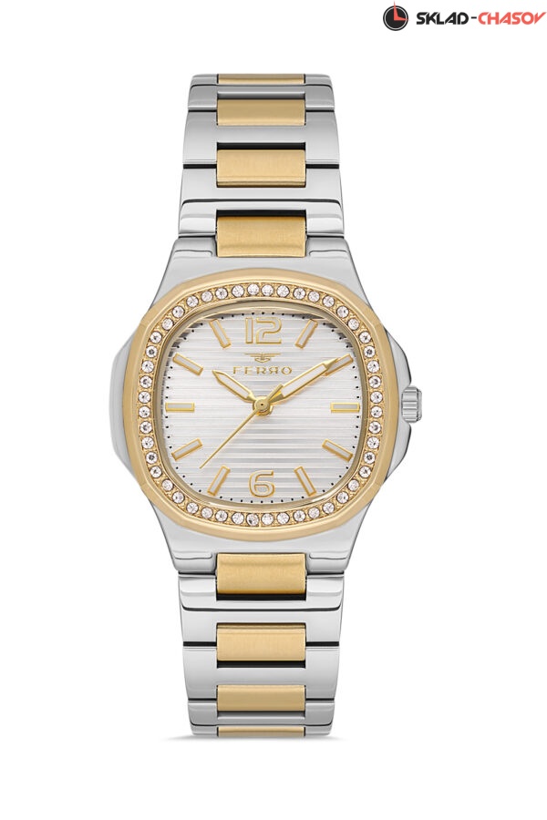 Утонченные женские наручные часы формы мягкий квадрат на браслете из нержавеющей стали с застежкой-бабочкой. Дизайн дополняется циферблатом с линейным паттерном и безелем с кристаллами. Часовая и минутная стрелки, а также индексы покрыты люминесцентным составом.