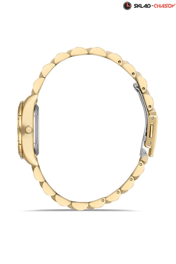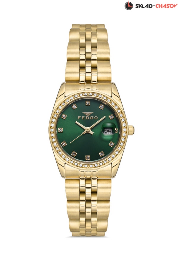 Утонченные женские наручные часы на браслете из нержавеющей стали с застежкой-бабочкой. Безель и циферблат украшены кристаллами. Благодаря технологии «солнечный луч» цвет циферблата более насыщен, а блеск ярче. Окошко даты с увеличительной линзой.