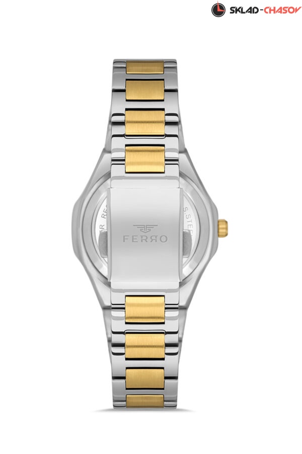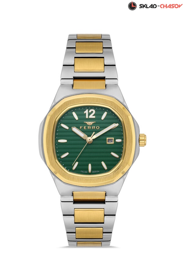 Женские наручные часы с браслетом из нержавеющей стали с застежкой-бабочкой, в котором сатинированные вставки идеально сочетаются с глянцевыми звеньями. Восьмиугольный безель идеально сочетается с линейным паттерном циферблата. Часовая и минутная стрелки, а также индексы покрыты люминесцентным составом. Дополнительно имеется окошко даты. Имеется пара в мужском исполнении (F11514AWT).