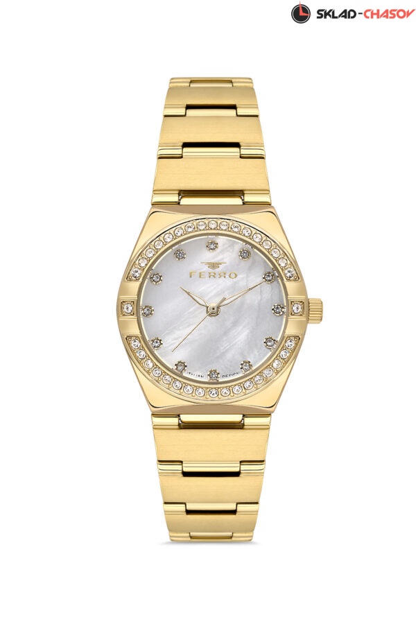 Утонченные женские наручные часы на браслете из нержавеющей стали с застежкой-бабочкой. Перламутровый дизайн циферблата дополняется кристаллами на безеле и тонкими стрелками. Часовая и минутная стрелки покрыты люминесцентным составом.