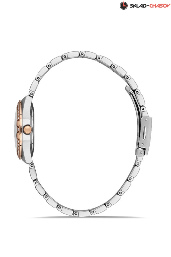 Утонченные женские наручные часы на браслете из нержавеющей стали с застежкой-бабочкой. Перламутровый дизайн циферблата дополняется кристаллами на безеле и тонкими стрелками. Часовая и минутная стрелки покрыты люминесцентным составом.