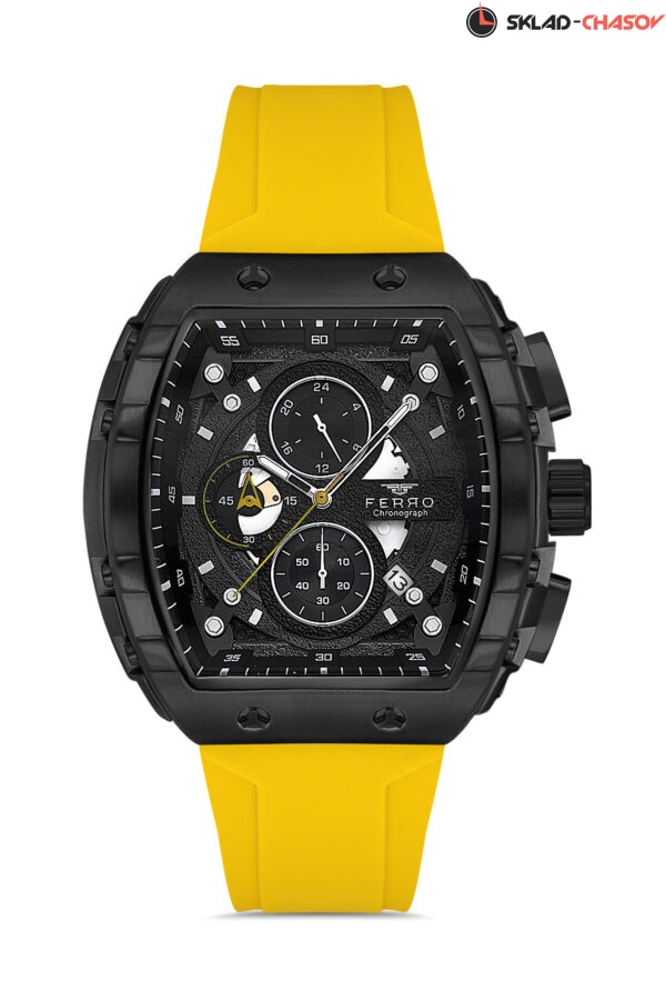 Мужские наручные часы-хронограф на мягком силиконовым ремешком идеально подойдут для спортивного и casual образа. Бочковидную форму корпуса идеально дополняют кнопки счетчика. Стрелки покрыты люминесцентным составом. Дополнительные функции: дата.