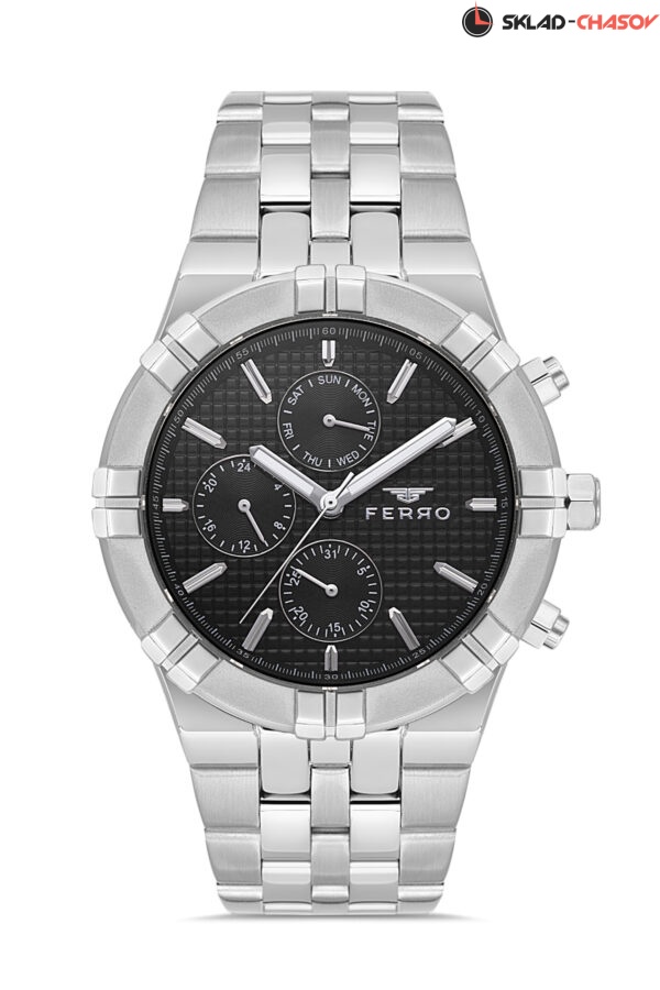 Мультифункциональные мужские наручные часы с браслетом из нержавеющей стали с удобной застежкой-бабочкой. Акцентный безель идеально сочетается с заводной головкой и кнопками. Квадратный паттерн на циферблате. Стрелки и индексы покрыты люминесцентным составом. Идеально подойдут для спортивного и casual образа. Дополнительные циферблаты предназначены для отображения даты, дня недели и 24-часового формата времени.