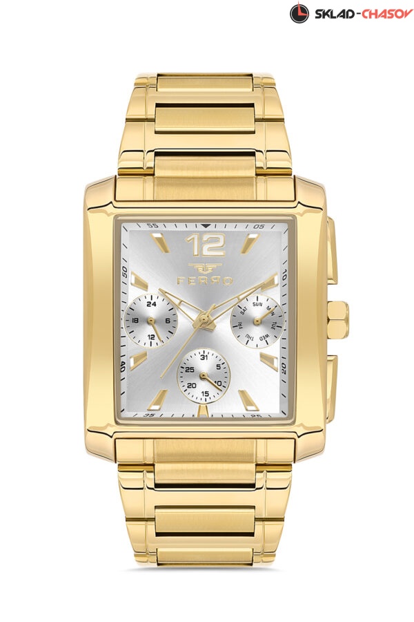 Классические мужские наручные часы с прямоугольным корпусом на браслете из нержавеющей стали с застежкой-бабочкой с мультифункцией. Благодаря технологии «солнечный луч» цвет циферблата более насыщен, а блеск ярче. Часовая и минутная стрелки, а также индексы покрыты люминесцентным составом. Дополнительные циферблаты предназначены для отображения даты, дня недели и 24-часового формата времени.