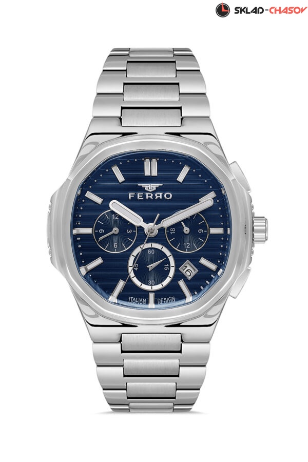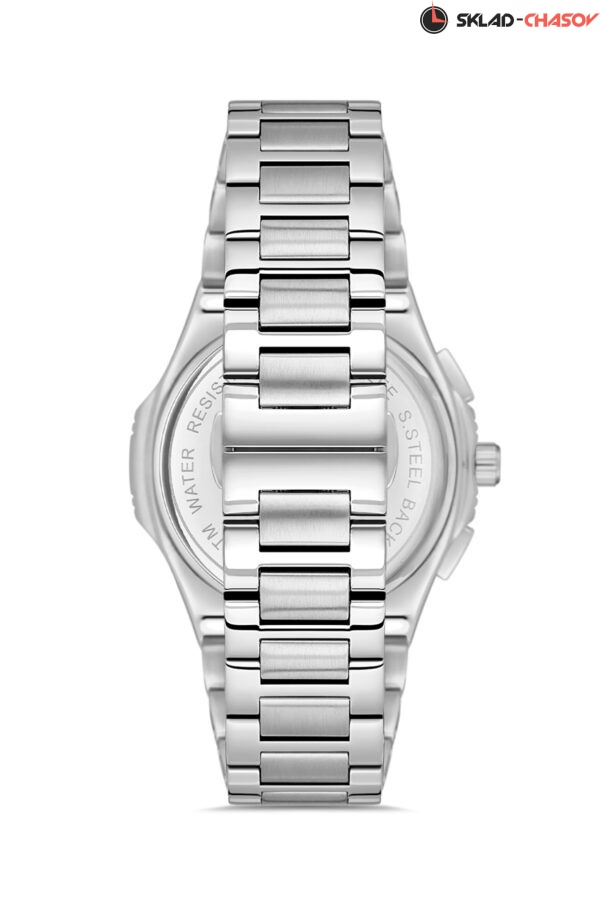 Мультифункциональные мужские наручные часы с нестандартным корпусом на браслете из нержавеющей стали с застежкой-бабочкой. Дизайн дополняется циферблатом с линейным паттерном и скругленными стрелками. Часовая и минутная стрелки, а также индексы покрыты люминесцентным составом. Дополнительные циферблаты предназначены для отображения даты, дня недели и 24-часового формата времени.