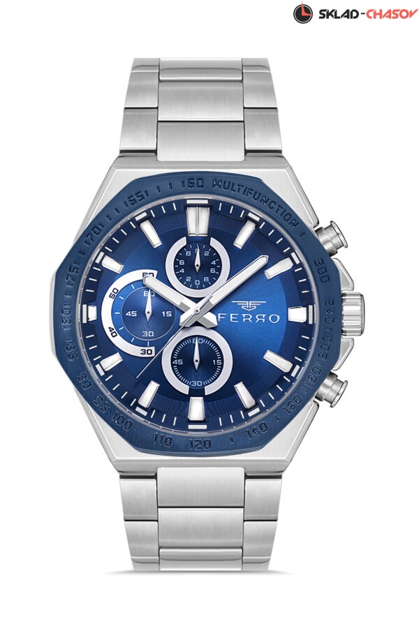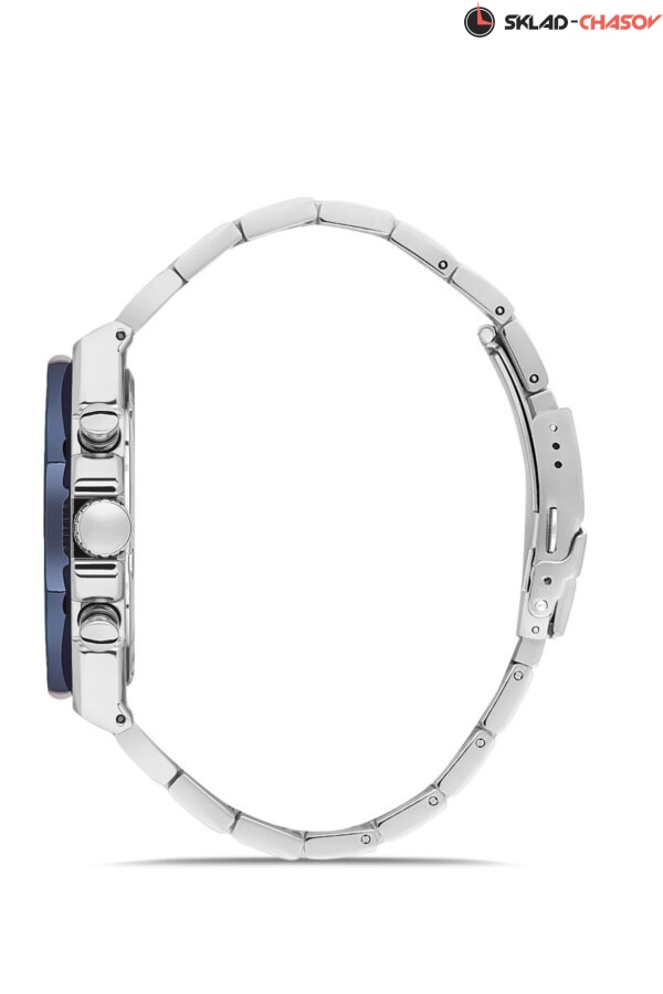 Мультифункциональные мужские наручные часы с контрастным безелем и браслетом из нержавеющей стали с застежкой-бабочкой идеально подойдут для спортивного и casual образа. Стрелки и индексы покрыты люминесцентным составом. Дополнительные контрастные циферблаты предназначены для отображения даты, дня недели и 24-часового формата времени.