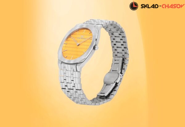 Классические мужские наручные часы с браслетом из нержавеющей стали с застежкой-бабочкой с лакончиным дизайном. Тонкий корпус и облегченный браслет. Дизайн дополняет полая стрелка и линейный паттерн на циферблате.