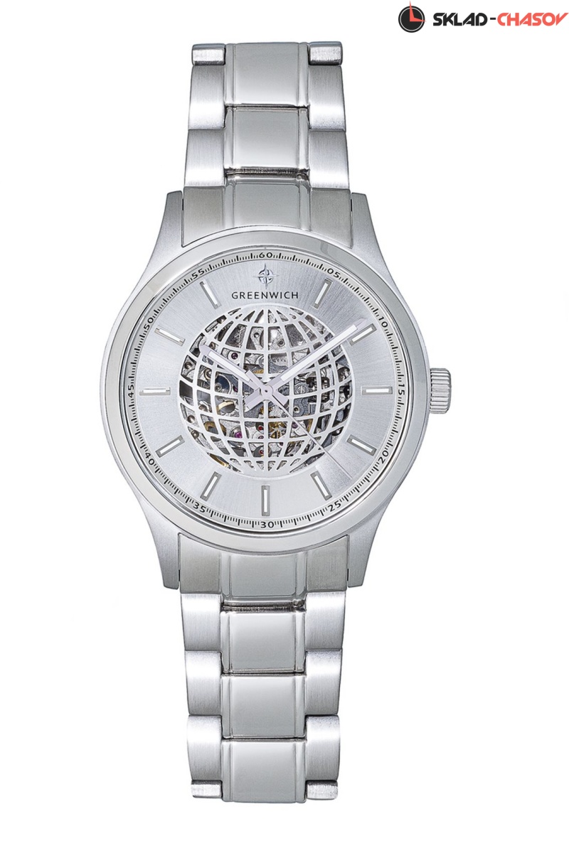 Часы-скелетон - это само по себе произведение часового искусства. А в серии Globe прозрачный циферблат украшает оригинальный элемент, линии параллелей и меридианов которого складываются в очертания глобуса. Задняя крышка модели тоже прозрачная, сквозь нее можно наблюдать за движениями ротора с традиционной уже для бренда гравировкой Good Luck и других деталей автоматического механизма Miyota. На пластине белого цвета закреплены накладные риски. Часовая и минутная стрелки выделены люминесцентным покрытием, которое обладает способностью светиться в темноте. Водостойкость часов Globe равна 10 атмосферам. Корпус модели сделан из нержавеющей стали, из этого же материала сделан и литой браслет. Стальная застежка-клипса и удобная заводная головка декорированы логотипом бренда Greenwich. Часы серии Globe - надежный по содержанию и впечатляющий по исполнению аксессуар, механизм которого будет заряжаться от движений руки, находясь на запястье владельца.