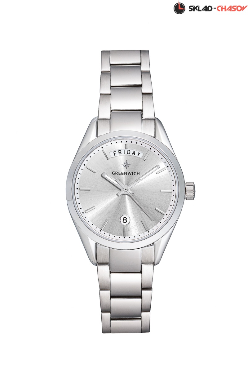 Новая коллекция Astrea от бренда Greenwich была названа в честь Астреи, древнегреческой богини точности. За точность в часах отвечает кварцевый механизм TMI, благодаря которому на белом циферблате отображается время (часы, минуты, секунды), дата и день недели. Обратите внимание на индикатор дня недели: он достаточно широкий, чтобы вместить название дня полностью, что, конечно, улучшает восприятие информации. Круглый корпус диаметром 34 мм сделан из нержавеющей стали, как и литой браслет с надежной застежкой-клипсой. Повышенная водостойкость равна 10 атмосфер. Часы Astrea хорошо сочетаются с повседневными образами, а из-за лаконичного размера корпуса модель изящно смотрится на любом запястье.