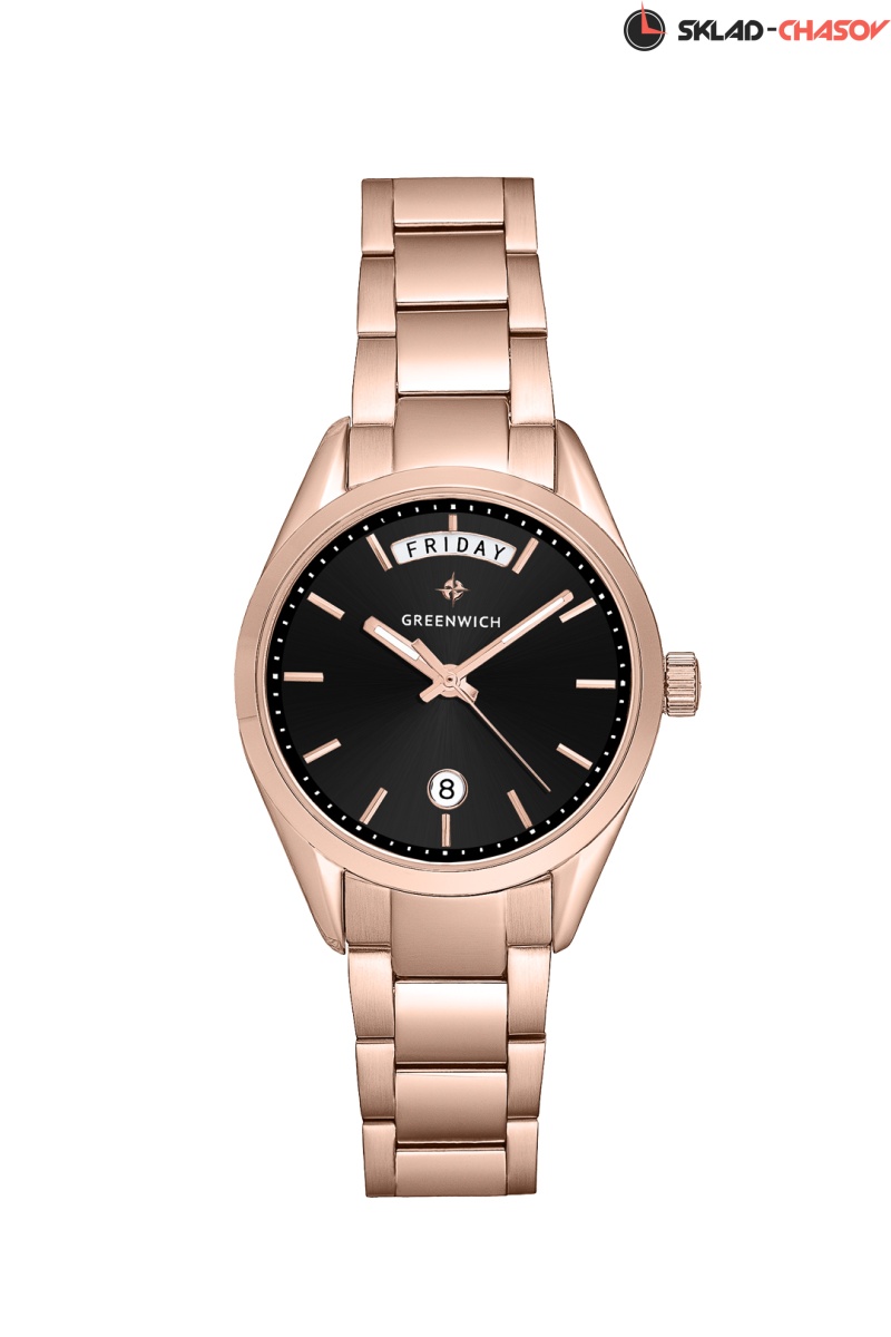 Привлекательность часов новой серии Astrea основана на современной интерпретации классического дизайна и надежности, которая необходима для повседневного аксессуара. 34 миллиметра — именно такой диаметр выбрали создатели модели для корпуса, сделанного из нержавеющей стали с PVD-покрытием из розового золота. Он элегантно смотрится и удобен даже в сочетании с длинным рукавом одежды. Не зря лаконичные аксессуары снова уверенно идут вверх в списке модных трендов. На черном циферблате движутся стрелки, часовая и минутная с люминесцентным покрытием, которое светится в темноте. Накладные индексы хорошо читаются, как и широкий индикатор дня недели. Аккуратное окошко даты расположено на 6 часах. Повышенная водостойкость составляет 10 атмосфер: можно плавать, не снимая часы с запястья. Браслет состоит из литых стальных звеньев и стальной же застежки-клипсы с логотипом бренда. Стильные часы Astrea деликатно подчеркнут элегантность образа и покажут точную информацию о времени, дате и дне недели.