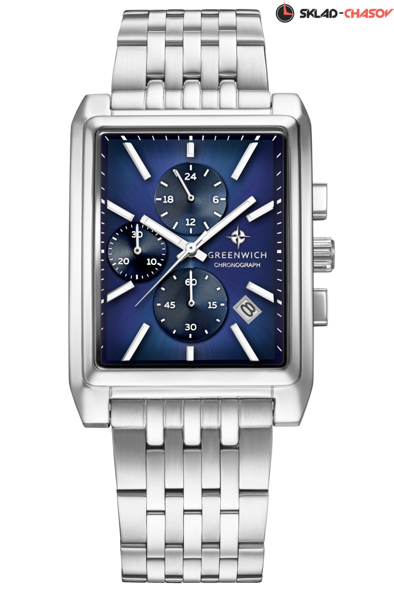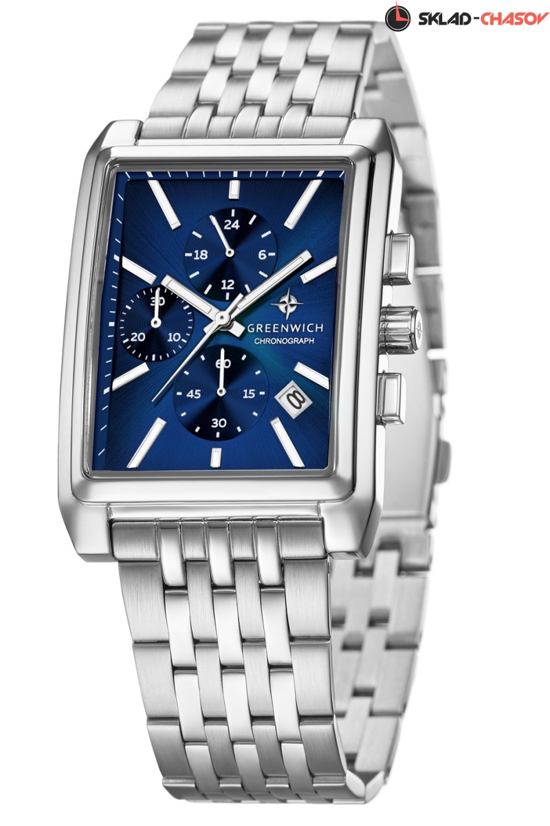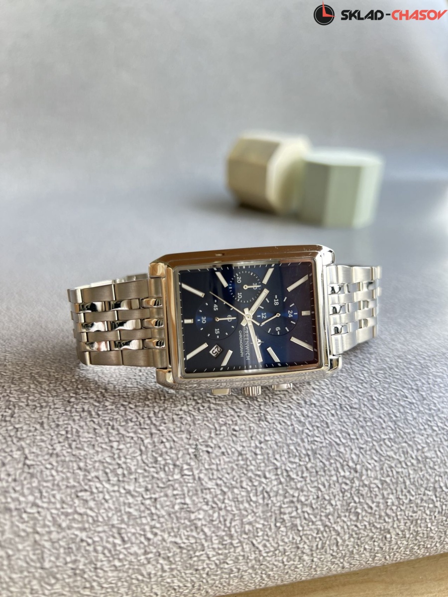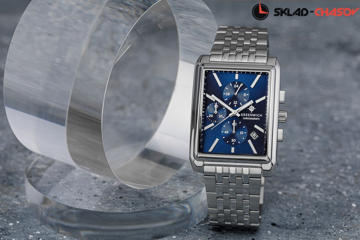 Кварцевый механизм часов серии Galeon Chrono позволяет точно определять время, дату и пользоваться функциями хронографа: засекать время в минутах и секундах. Плюс к этому, на синем циферблате модели есть индикатор 24-х часов (демонстрирует время в формате 24-х часов). Защищает механизм корпус прямоугольной формы из нержавеющей стали. Стрелки и риски светятся в темноте — они покрыты специальным люминесцентным составом. Браслет часов, как и застежка-клипса, выполнен из нержавеющей стали. Серия Galeon Chrono - это сочетание спортивного функционала и классической элегантности. Часы хорошо дополнят тот образ, который вы выберете сегодня, от классического костюма до расслабленного casual.