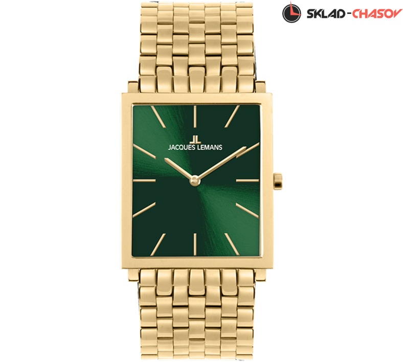 Элегантный тонкий корпус часов прямоугольной формы сделан из нержавеющей стали с PVD-покрытием из желтого золота. Время определить легко: на темно-зеленом полированном циферблате расположены крупные накладные риски и две стрелки, часовая и минутная. В модели установлено минеральное стекло с сапфировым напылением. Конструкция стального браслета позволяет аксессуару удобно облегать запястье. Застежка-клипса надежно удерживает часы от падения. Часы 1-2174 – тот самый аксессуар, который, благодаря классическому дизайну, всегда будет в моде. 23x26