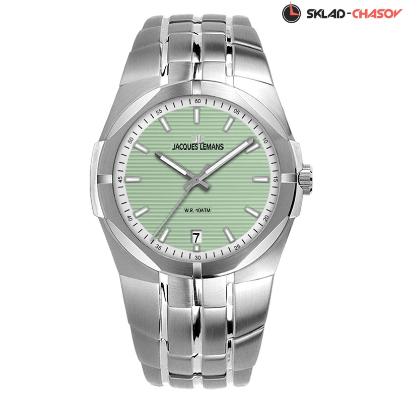 сделан из нержавеющей стали. На циферблате размещены три стрелки и окошко даты. Часовая и минутная стрелки и крупные риски покрыты люминесцентным покрытием, мягкое свечение которого поможет определить время даже в темноте. В модели установлено ударопрочное минеральное стекло. Водостойкость в 10 атмосфер говорит о том, что можно плавать, не снимая часы с запястья. Браслет из нержавеющей стали украшает сочетание двух видов финишной обработки: зеркальной полировки и матирования. Эргономичная форма корпуса позволяет часам удобно лежать на запястье, а застежка-клипса предотвратит падение даже при случайном расстегивании.
