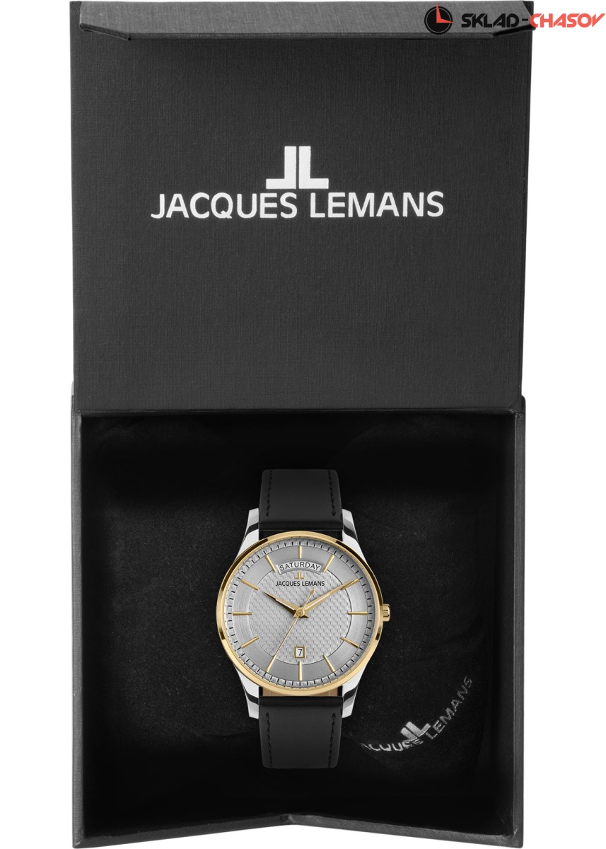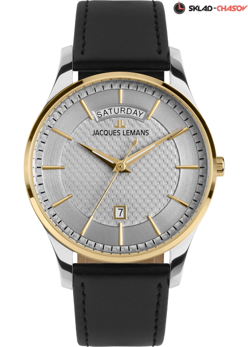 Классический дизайн и надежные материалы: серия 1-2193 включает часы в корпусе из нержавеющей стали с универсальным диаметром 40 мм, внутри которого работает точный кварцевый механизм. Многоуровневый циферблат стального цвета украшен объемным рисунком в центральной зоне. Крупные накладные риски хорошо читаются благодаря PVD-покрытию из желтого золота, стрелки часов и минут покрыты люминесцентным составом, который светится в темноте. Широкое окошко на 12 часах позволяет показывать название дня недели полностью, без сокращений. На 6 часах расположена апертура даты, выделенная рамкой. В модели установлено ударопрочное минеральное стекло. Ремешок выполнен из натуральной кожи черного цвета с прошивкой, продлевающей срок его службы.
