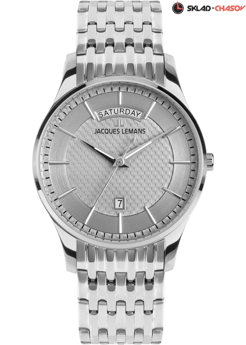 Классический дизайн и надежные материалы: серия 1-2193 включает часы в корпусе из нержавеющей стали с универсальным диаметром 40 мм, внутри которого работает точный кварцевый механизм. Многоуровневый циферблат стального оттенка украшен объемным рисунком в центральной зоне. Крупные накладные риски хорошо читаются, стрелки часов и минут покрыты люминесцентным составом, который светится в темноте. Широкое окошко на 12 часах позволяет показывать название дня недели полностью, без сокращений. На 6 часах расположена апертура даты, выделенная рамкой. В модели установлено ударопрочное минеральное стекло. Браслет собран из стальных звеньев, надежная застежка-клипса тоже сделана из нержавеющей стали.