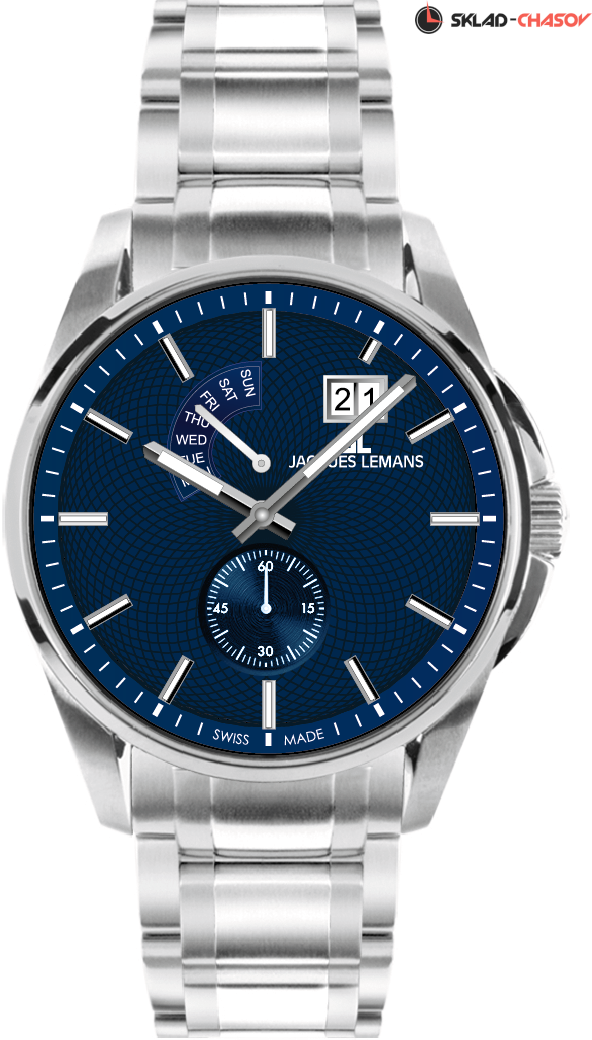 Наручные часы Jacques Lemans 1-2199M, коллекция Classic Derby. Водозащита 10 ATM, стальной браслет, кварцевый механизм. Диаметр корпуса 44 мм.