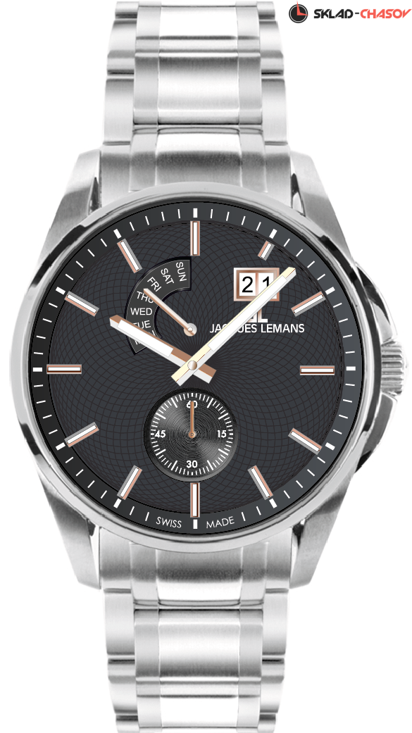 Наручные часы Jacques Lemans 1-2199O, коллекция Classic Derby. Водозащита 10 ATM, стальной браслет, кварцевый механизм. Диаметр корпуса 44 мм.