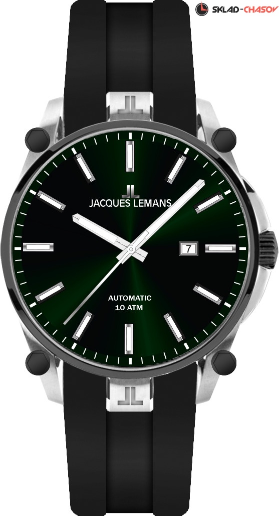 Наручные часы Jacques Lemans 1-2203F, коллекция Derby. Водозащита 10 ATM, силиконовый ремень, механика с автоподзаводом. Диаметр корпуса 44 мм.
