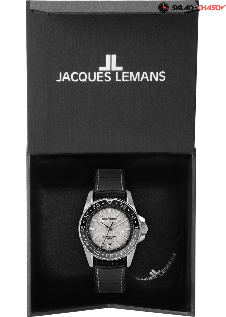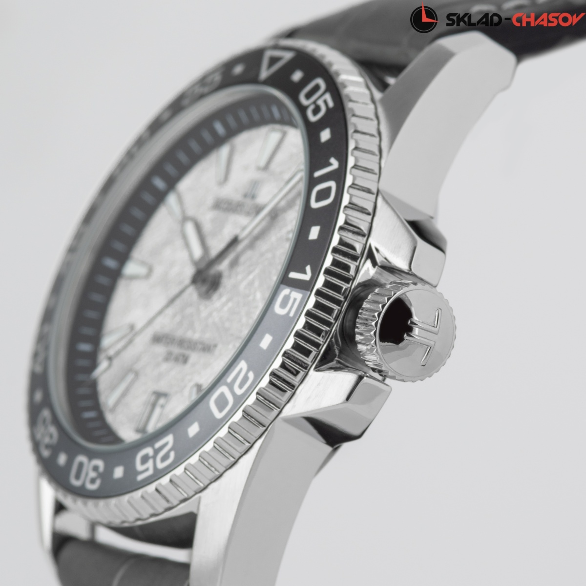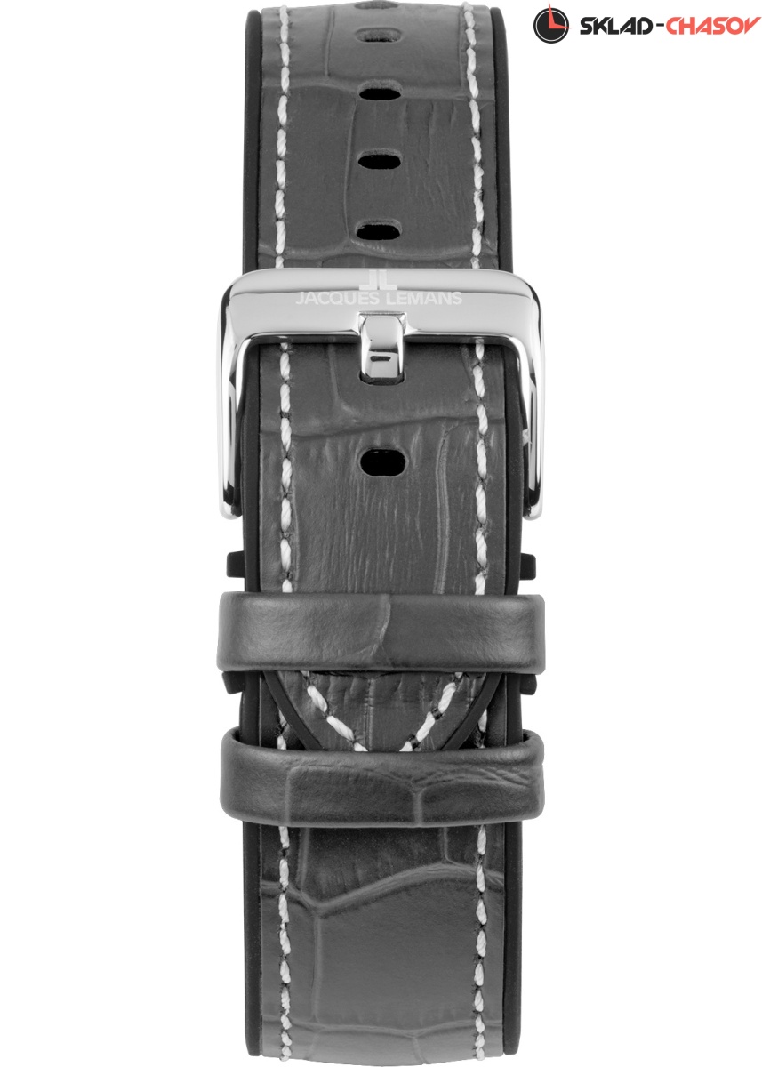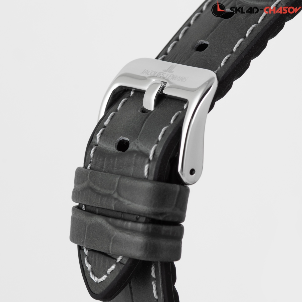Спортивные часы с повышенной водостойкостью 20 атмосфер оснащены 41-миллиметровым корпусом из нержавеющей стали с широким безелем, на который вынесена дополнительная индикация секунд. Интересная текстура светло-серого циферблата делает его визуально более объемным и широким: здесь разместили крупные стрелки и накладные риски с люминесцентном покрытием. На 6 часах расположено окошко даты, выделенное полированной рамкой. Завинчивающаяся заводная головка окружена дополнительной защитой, которая предусмотрена в конструкции корпуса. В модели установлено ударопрочное минеральное стекло. Ремешок черного цвета состоит из двух частей: внутренняя сделана из силикона, материала, который не боится повышенной влажности, внешняя — из натуральной кожи. Такая комбинация имеет несколько преимуществ: ремешок соответствует спортивному характеру часов но, вместе с тем, подчеркивает их универсальность, позволяя сочетать аксессуар и с повседневной одеждой.