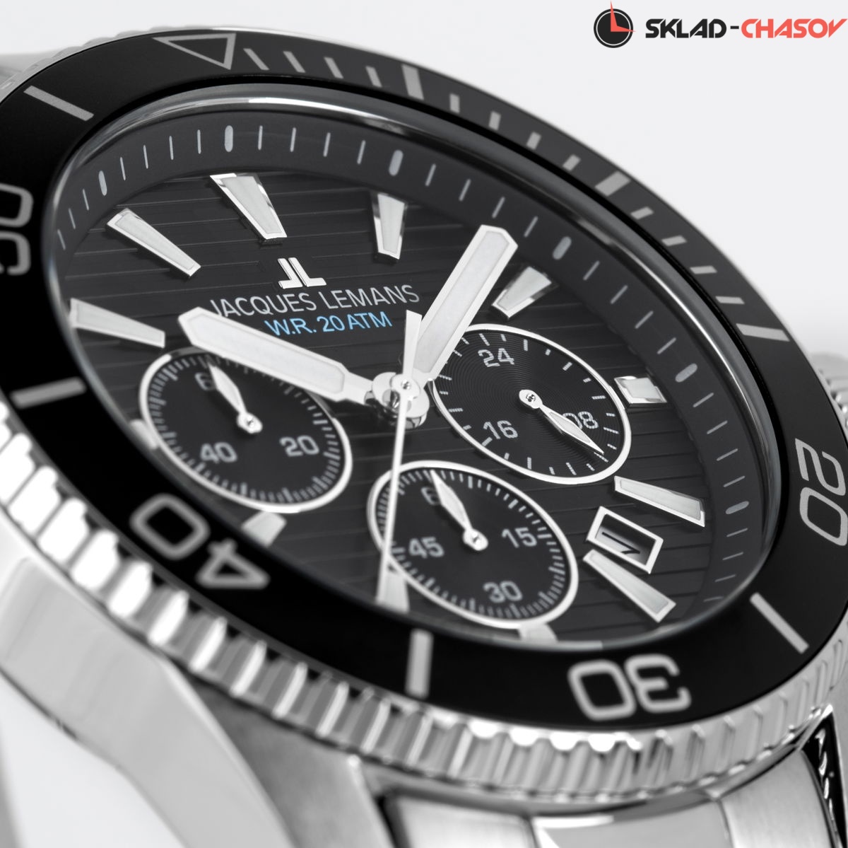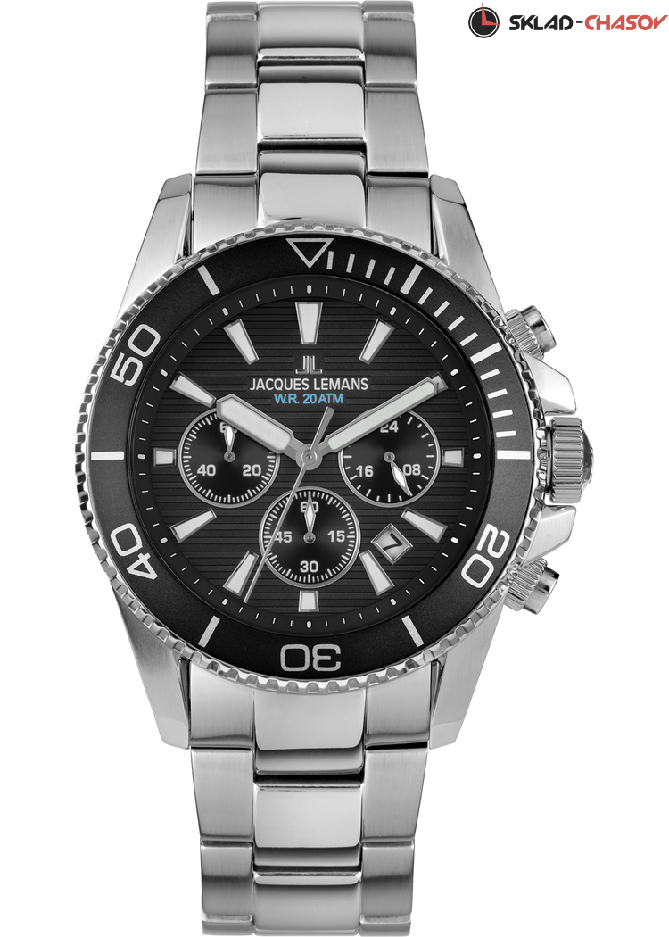 Наручные часы Jacques Lemans 1-2206G, коллекция Sport Liverpool Diver. Водозащита 20 ATM, литой стальной браслет, кварцевый механизм. Диаметр корпуса 44 мм.