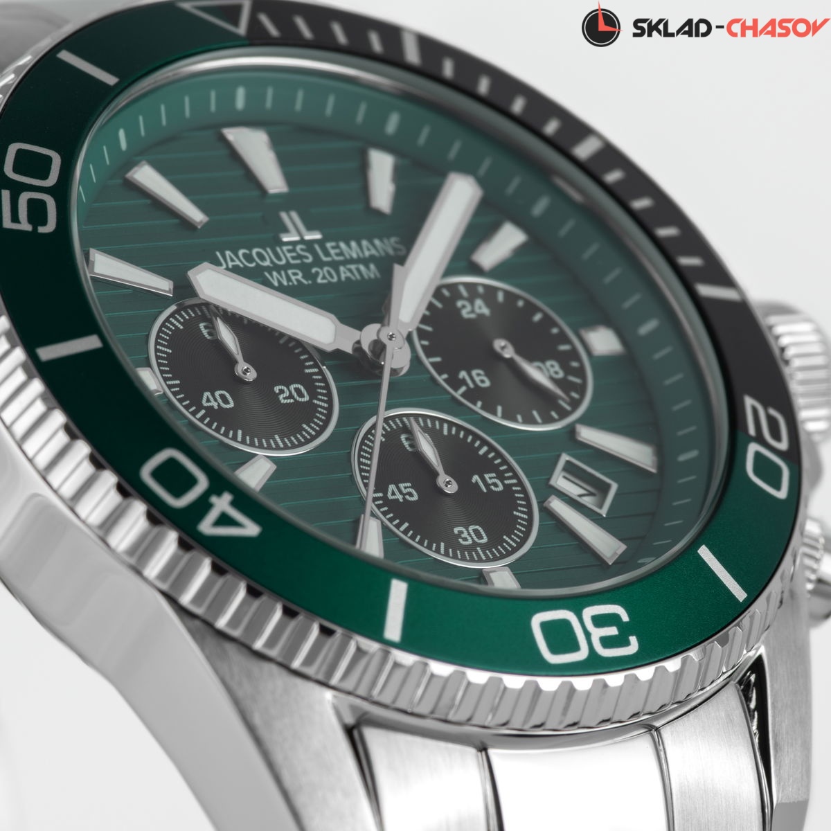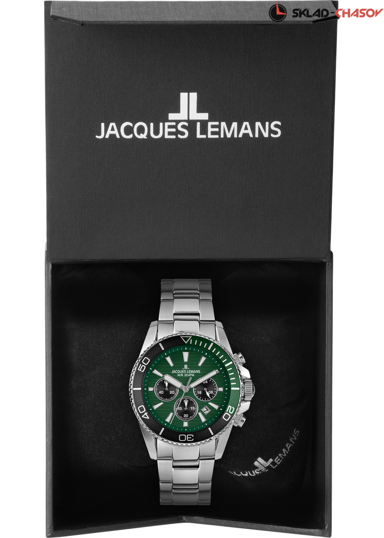 Наручные часы Jacques Lemans 1-2206i, коллекция Sport Liverpool Diver. Водозащита 20 ATM, литой стальной браслет, кварцевый механизм. Диаметр корпуса 44 мм.