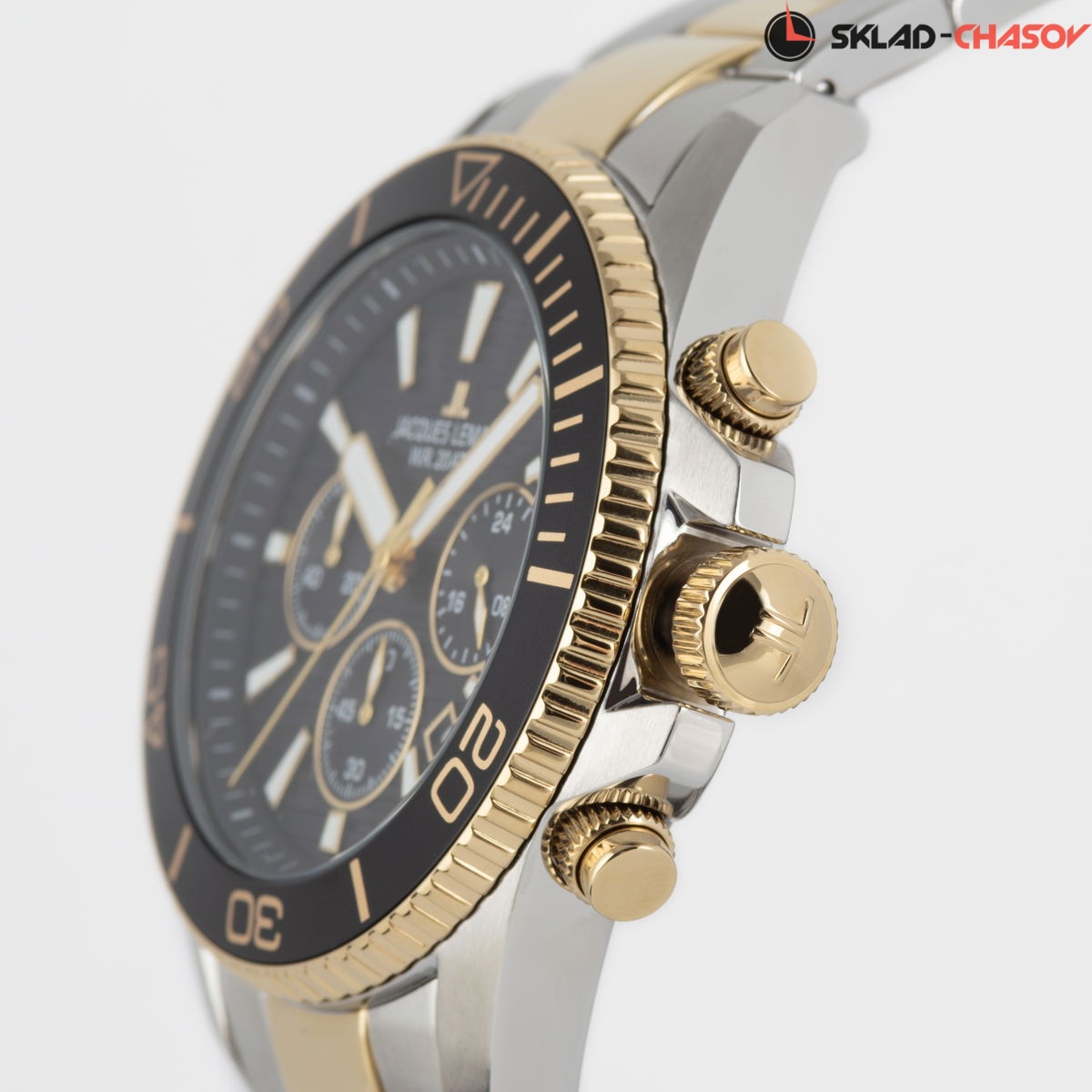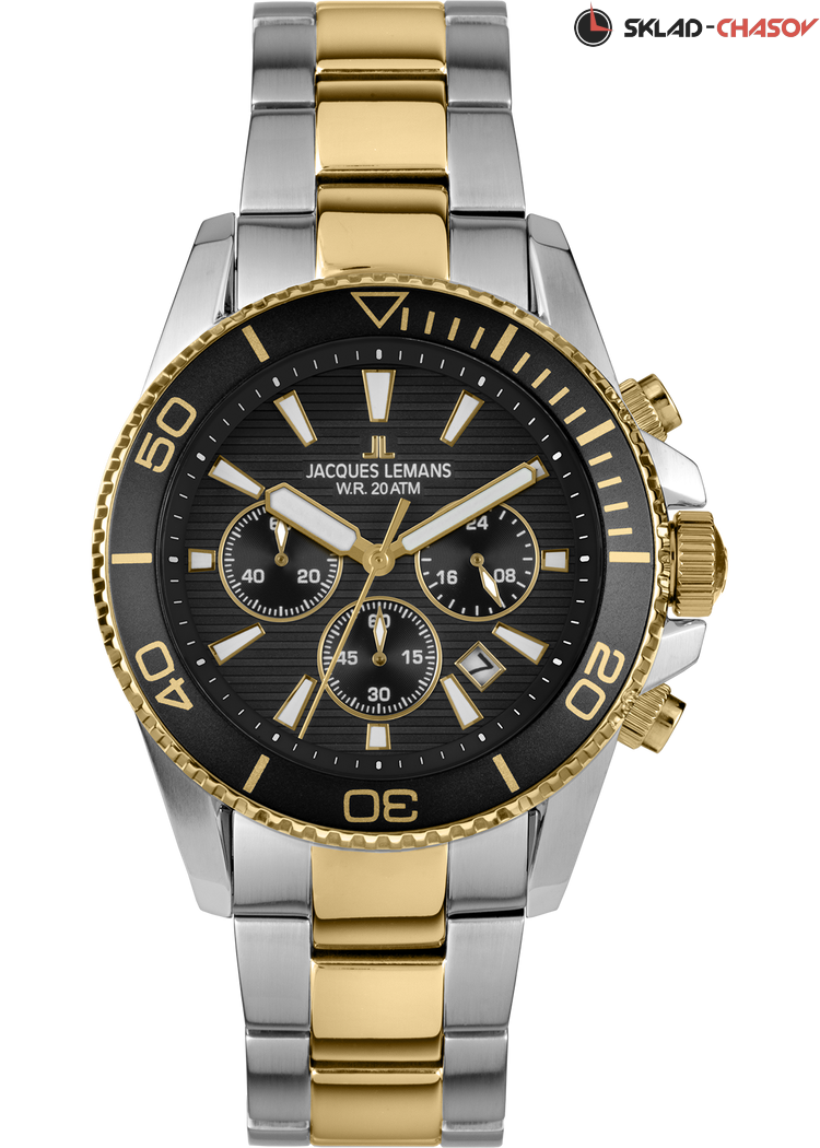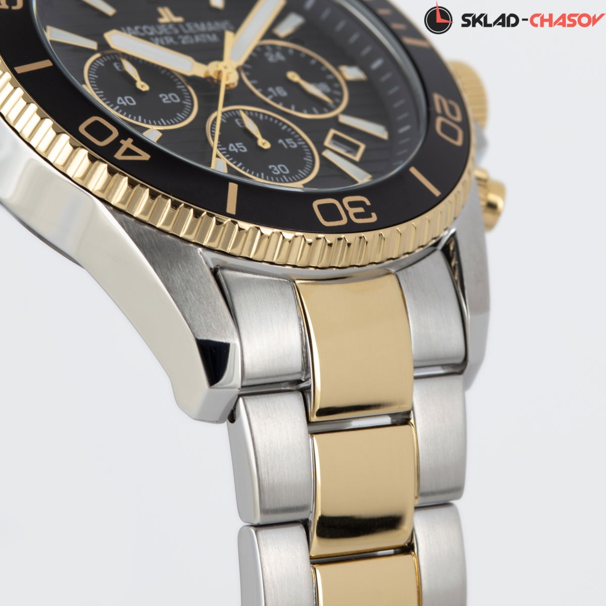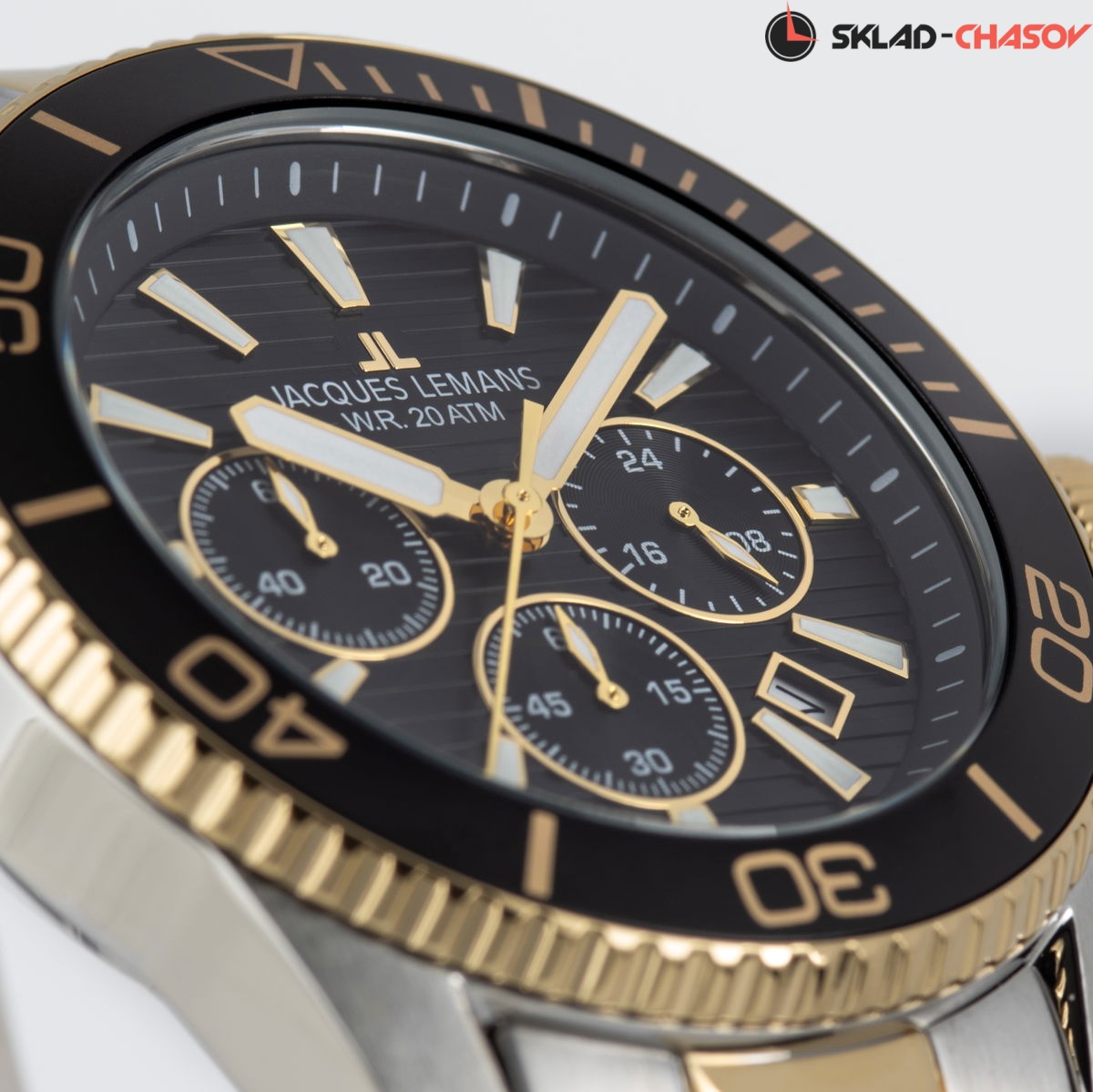 Наручные часы Jacques Lemans 1-2206L, коллекция Sport Liverpool Diver. Водозащита 20 ATM, литой стальной браслет, кварцевый механизм. Диаметр корпуса 44 мм.