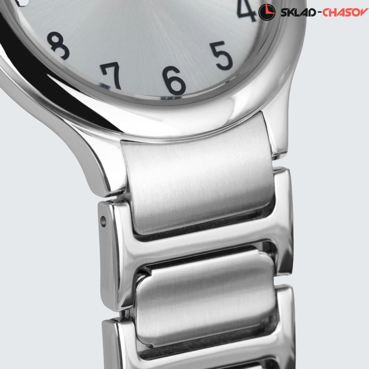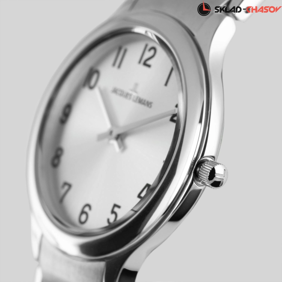 Кварцевые часы из модной серии Milano. Тонкий корпус диаметром 36 мм сделан из нержавеющей стали с безелем, отполированным до зеркального блеска. На стальном лаконичном циферблате с полировкой в виде солнечных лучей расположены хорошо читаемые контрастные арабские цифры и стрелки часов и минут. В модели установлено ударопрочное минеральное стекло. Браслет собран из стальных звеньев, центральные — с матрированием, боковые — с зеркальной полировкой: такое чередование выгодно подчеркивает структуру браслета. На надежной и удобной в использовании застежке-клипсе с двумя боковыми кнопками выгравирован логотип бренда Jacques Lemans. Минималистичные и современные — часы 1-2208 станут прекрасным дополнением образа на каждый день.