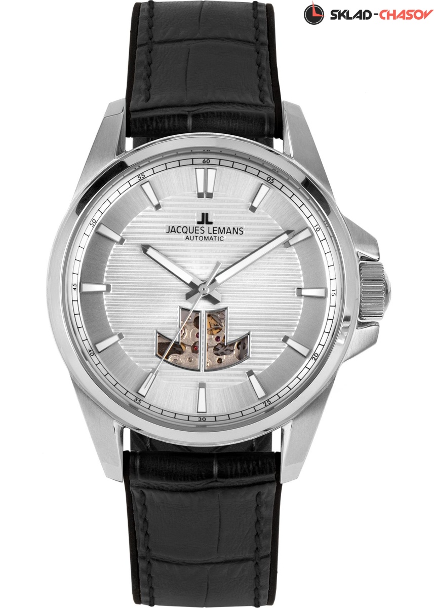 Мужские спортивные часы-скелетоны механические с автоподзаводом Jacques Lemans Liverpool 1-2209B представляют собой стильный аксессуар, отражающий идеальное сочетание современного дизайна, надёжности и функциональности. Корпус из нержавеющей стали диаметром 44 мм идеально сбалансирован и элегантен. Ударопрочное минеральное стекло Crystex защищает циферблат от царапин. Ремешок черного цвета состоит из двух частей: внутренняя сделана из силикона, материала, который не боится повышенной влажности, внешняя — из натуральной кожи. Водозащита 50 метров позволит защитить корпус от случайных брызг или капель дождя. Стрелки и метки с люминесцентным покрытием позволяющие легко определять время даже в темноте. Это аксессуар для мужчины, который ценит классический стиль и функциональность.