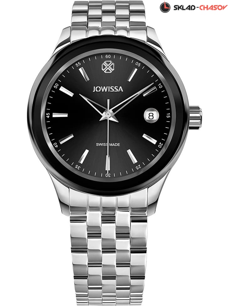 Мужские кварцевые часы, корпус и браслет из нержавеющей стали, индикация числа, тахиметр, диаметр корпуса 45 мм, водозащита 5 АТМ (защита от брызг).