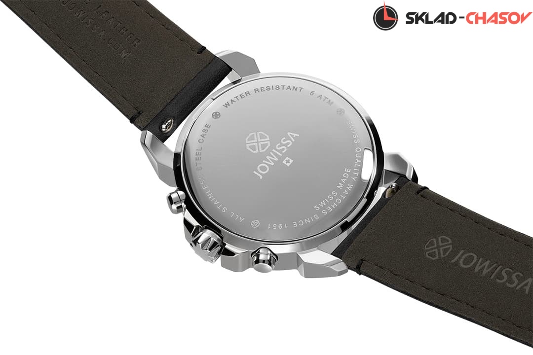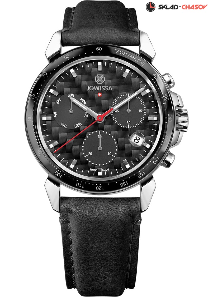 Мужские кварцевые часы, корпус из нержавеющей стали, ремешок из натуральной кожи, циферблат с хронографом и индикацией даты, тахиметр, сапфировое стекло, диаметр корпуса 42 мм, водозащитный корпус 5 АТМ (защита от брызг).