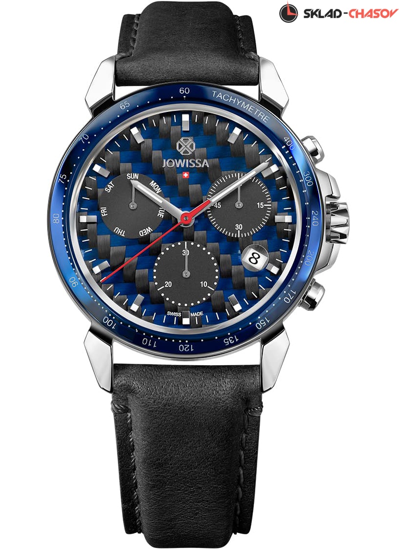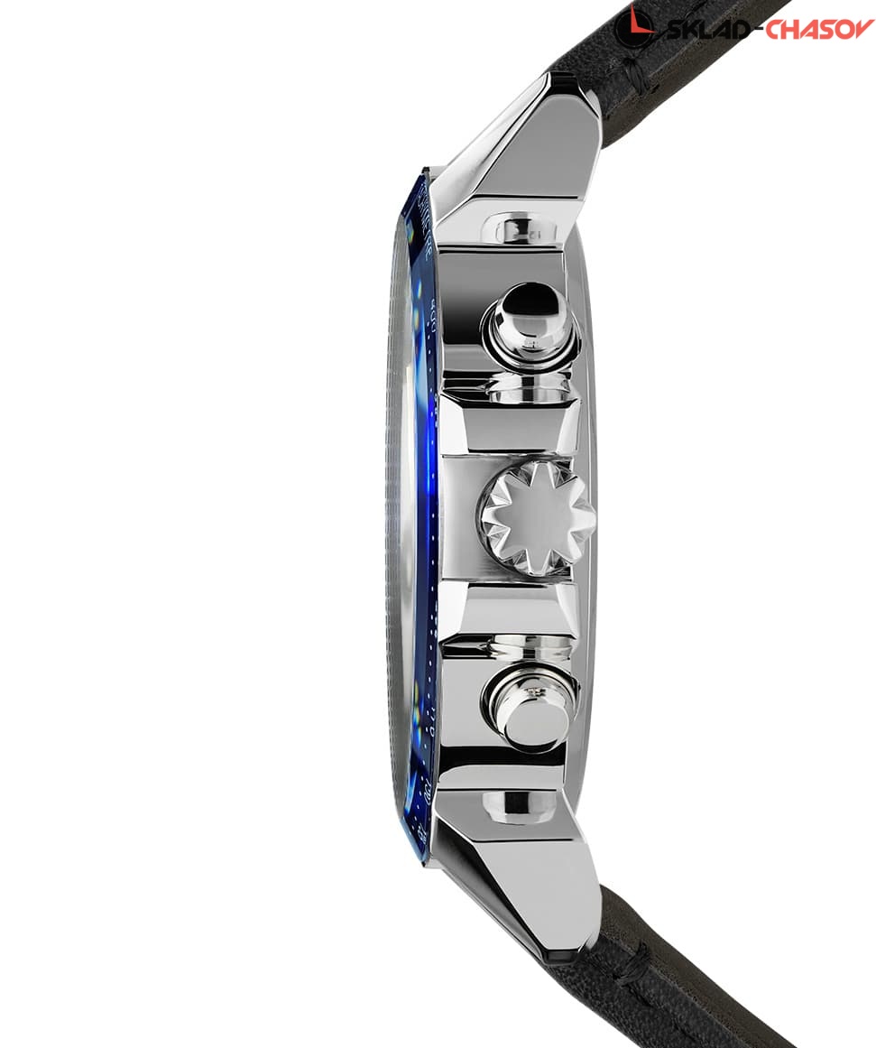 Мужские кварцевые часы, корпус из нержавеющей стали, ремешок из натуральной кожи, циферблат с хронографом и индикацией даты, тахиметр, сапфировое стекло, диаметр корпуса 42 мм, водозащитный корпус 5 АТМ (защита от брызг).