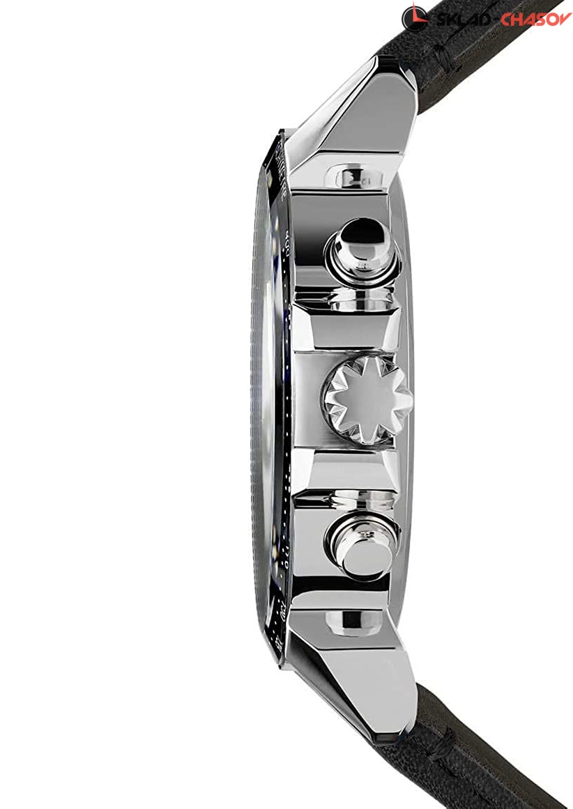 Мужские кварцевые часы, корпус из нержавеющей стали, ремешок из натуральной кожи, циферблат с хронографом и индикацией даты, тахиметр, сапфировое стекло, диаметр корпуса 42 мм, водозащитный корпус 5 АТМ (защита от брызг).
