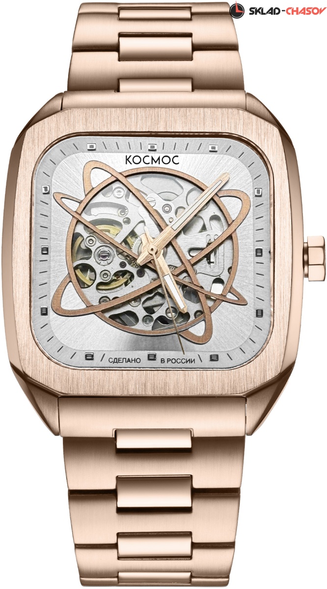 Окошко на циферблате декорировано линиями, напоминающими орбиты, траектории, по которым движутся небесные тела. Линии визуально выделены PVD-покрытием из розового золота.