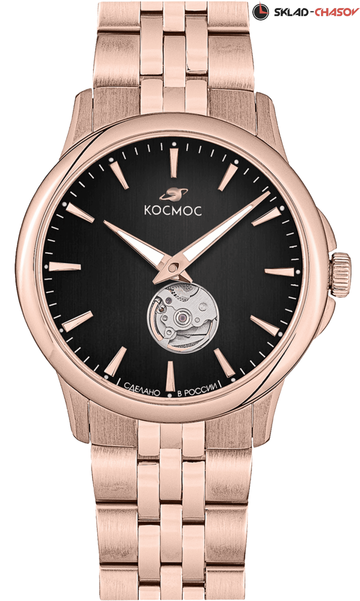 Часы Телескоп установлены в классический круглый корпус из нержавеющей стали с PVD-покрытием из розового золота. Для механических часов он достаточно тонкий. Все дело в установленном внутри механизме Miyota, калибр 9029, высота которого всего 3.9 мм. Дизайн циферблата отсылает нас к стилю ретро: на него нанесена текстура в виде вертикальных полос. На этом фоне движутся крупные часовая и минутная стрелки, выделенные люминесцентным покрытием, которое светится в темноте. В часах установлено сапфировое стекло с антибликовым покрытием. Обратите внимание на заднюю крышку. В серии Телескоп она прозрачная и крепится на 4-х винтах, здесь выгравирован индивидуальный номер часов в формате хх/50. Цифра 50 обозначает, что тираж каждой модели составляет всего 50 штук.