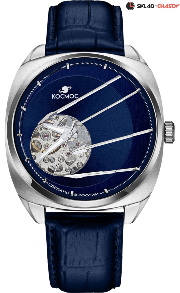 В корпусе необычной формы, сделанном из гипоаллергенной нержавеющей стали, работает механизм Seiko с функцией автоподзавода. За его движением можно следить сквозь прозрачную заднюю крышку, надежно закрепленную на четырех винтах. Здесь же размещен и индивидуальный номер модели в формате хх/50. Украшением циферблата служит сочетание разных видов полировки и, конечно же, открытый баланс, окруженный декоративными элементами, отсылающими к антеннам Спутника. На этом фоне хорошо читаются крупные стрелки, часовая и минутная с люминесцентным покрытием. Для защиты синего циферблата установлено сапфировое стекло, которое надолго сохраняет свою прозрачность, стойко сопротивляясь появлению микроцарапин. Водостойкость равна 10 атмосфер. Корпус дополняет ремешок из натуральной кожи синего цвета, застежка-бабочка с двумя боковыми кнопками сделана из нержавеющей стали.