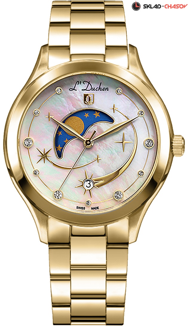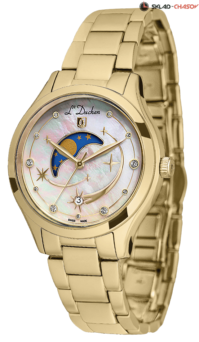 В часах используется швейцарский кварцевый механизм Ronda. Корпус часов из гипоаллергенной нержавеющей стали с PVD-покрытием из желтого золота. Эффектно смотрится чередование матовых и полированных частей. Дополняет модель браслет, собранный из литых стальных звеньев. Надежная раскладная застежка-«бабочка» поможет предотвратить падение часов при случайном расстегивании.