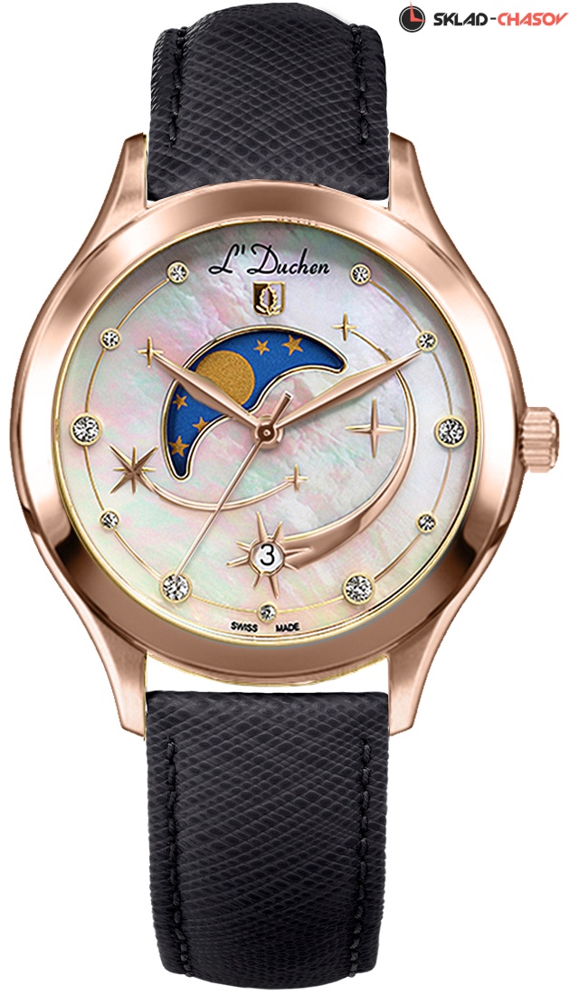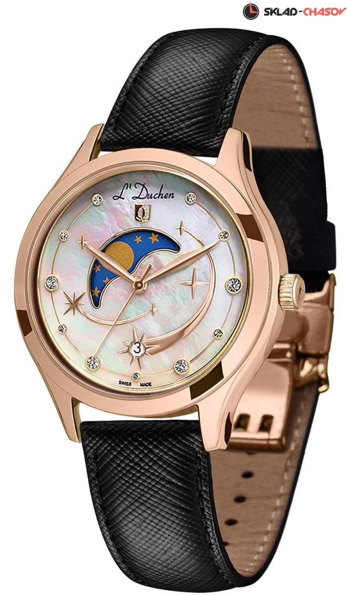 Волшебство кварцевых часов серии Perseides в уникальном циферблате синего цвета из натурального перламутра, рисунок которого создан самой природой. Этот материал служит фоном хорошо читаемым стрелкам часов, минут и секунд. Накладные элементы в виде падающих звезд символизируют «персеиды» - метеорный поток, давший название коллекции. В один из них органично вписано круглое окошко даты. Украшением модели служит индикатор фаз Луны, выделенный металлической рамкой. Особое сияние циферблату придают фианиты разного размера. Корпус сделан из прочной нержавеющей стали с чередованием полированных и матовых элементов, декорированных PVD-покрытием из желтого золота. Его дополняет сапфировое стекло, прозрачное и стойкое к появлению микроцарапин. Часы установлены на браслет из литых стальных звеньев с полировкой. Застежка-бабочка удобна в использовании и поможет предотвратить падение часов при случайном расстегивании. На застежке, задней крышке и заводной головке выгравировано изображение дубового листа — логотипа бренда L’Duchen. Часы серии Perseides подчеркнут вашу индивидуальность независимо от выбранного образа.