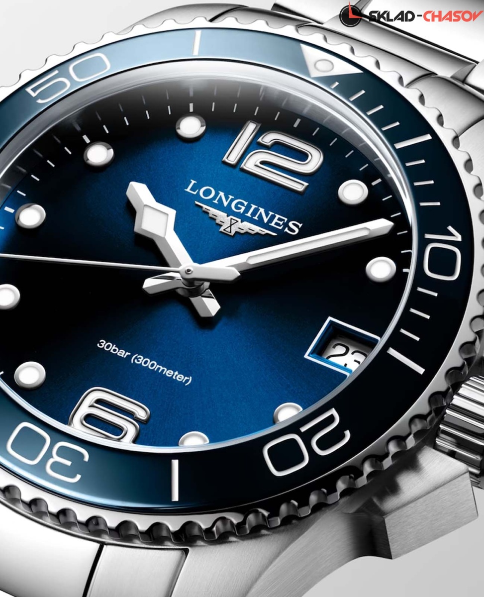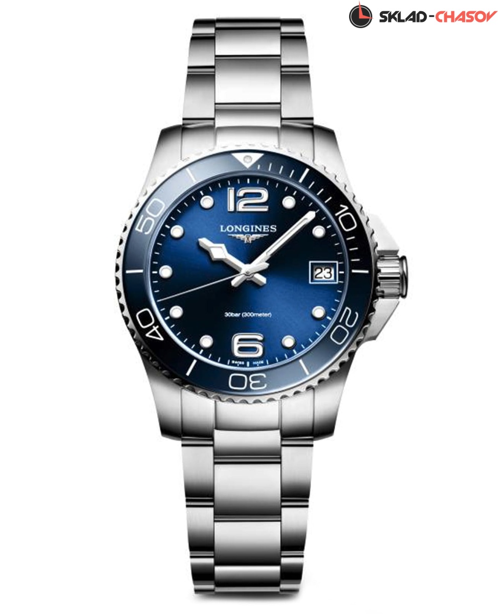 Женские швейцарские часы для дайвинга Longines HydroConquest L3.370.4.96.6, кварцевый механизм с высокой точностью. Сапфировое стекло с многослойным антибликовым покрытием с обеих сторон, устойчивое к появлению царапин, обладающее высокой прозрачностью. Корпус часов изготовлен из стали. Вращающийся безель из стали и керамики, защищенный от царапин, никогда не изнашивается и не выцветает. Стрелки и метки с люминесцентным покрытием. Окошко даты находится в положении 3 часов. Класс водозащиты: 300 метров, позволит плавать, нырять и заниматься другими водными видами спорта. Стальной браслет на раскладной застёжке.