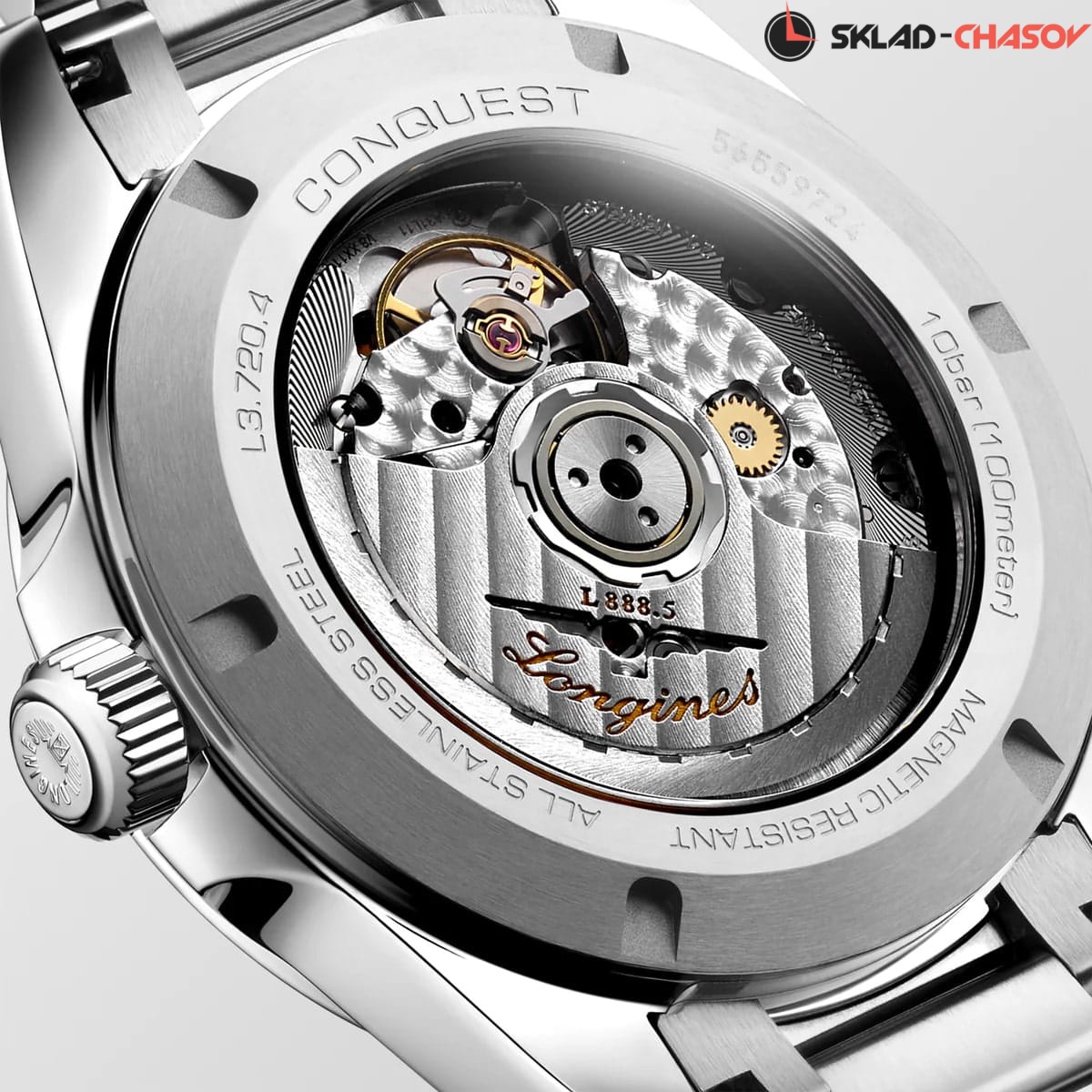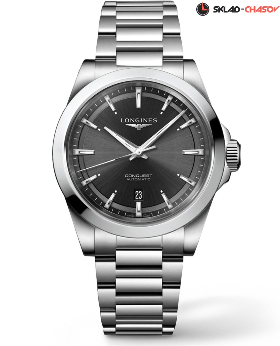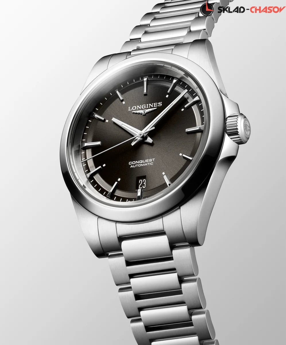 Женские швейцарские механические часы с автоподзаводом Longines Conquest L3.720.4.52.6. Сапфировое стекло устойчивое к появлению царапин, обладающее высокой прозрачностью. Корпус часов изготовлен из нержавеющей стали. Циферблат выполнен по технологии Sunray (солнечные лучи). Стрелки с люминесцентным покрытием. Окошко даты в положении 6 часов. Прозрачная задняя крышка. Класс водозащиты: 100 метров, позволит плавать, нырять и заниматься другими водными видами спорта. Стальной браслет на застёжке-бабочке с кнопками.