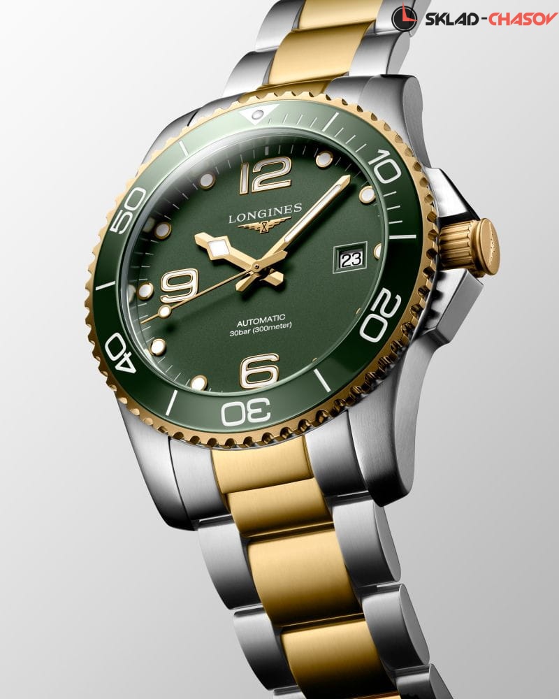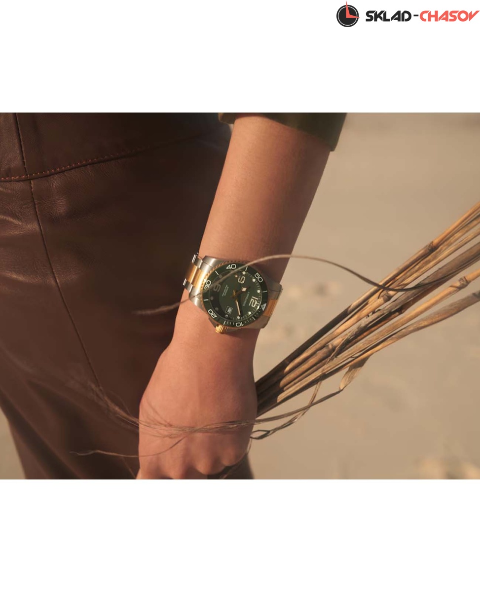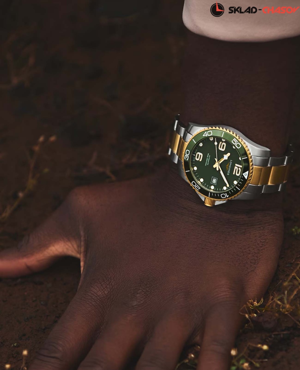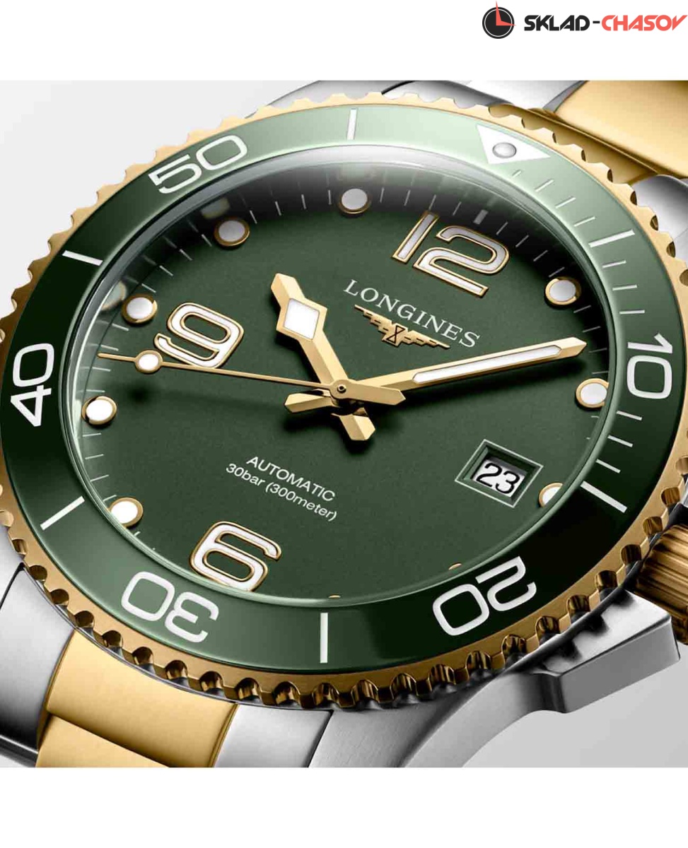 Мужские механические швейцарские часы с автоподзаводом Longines HydroConquest L3.781.3.06.7. Сапфировое стекло с антибликовым покрытием, устойчивое к мелким механическим повреждениям. Корпус часов изготовлен из нержавеющей стали. Вращающийся стальной безель с люминесцентным покрытием Superluminova из нержавеющей стали с PVD-покрытием и керамики, защищенный от царапин, никогда не изнашивается и не выцветает. Стрелки и метки с люминесцентным покрытием. Окошко даты находится в положении 3 часа. Класс водозащиты: 300 метров, позволит плавать, нырять и заниматься другими водными видами спорта. Стальной браслет с частичным PVD-покрытием на раскладной застёжке с удлинением для дайверов.