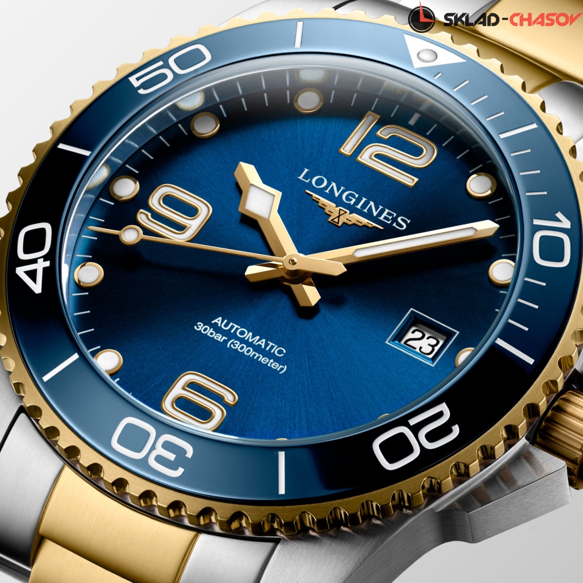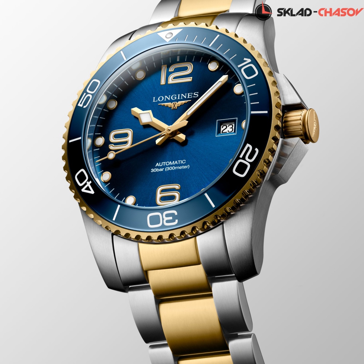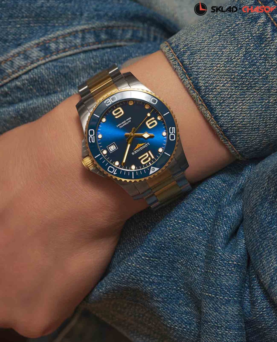 Мужские механические швейцарские часы с автоподзаводом Longines HydroConquest L3.781.3.96.7. Сапфировое стекло с антибликовым покрытием, устойчивое к мелким механическим повреждениям. Корпус часов изготовлен из нержавеющей стали. Вращающийся стальной безель с люминесцентным покрытием Superluminova из нержавеющей стали с PVD-покрытием и керамики, защищенный от царапин, никогда не изнашивается и не выцветает. Стрелки и метки с люминесцентным покрытием. Окошко даты находится в положении 3 часа. Класс водозащиты: 300 метров, позволит плавать, нырять и заниматься другими водными видами спорта. Стальной браслет с частичным PVD-покрытием на раскладной застёжке с удлинением для дайверов.