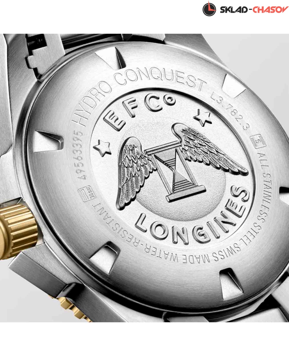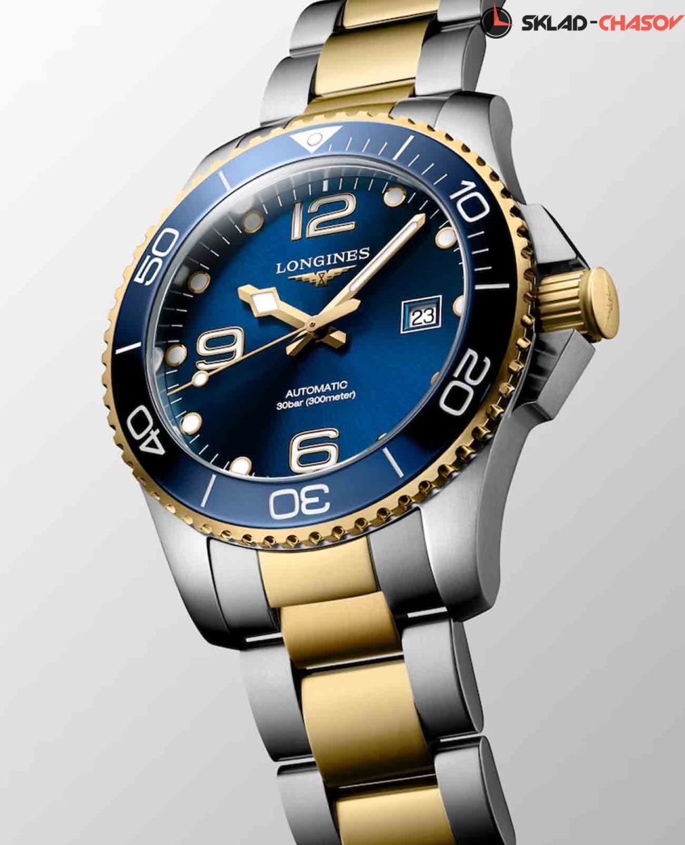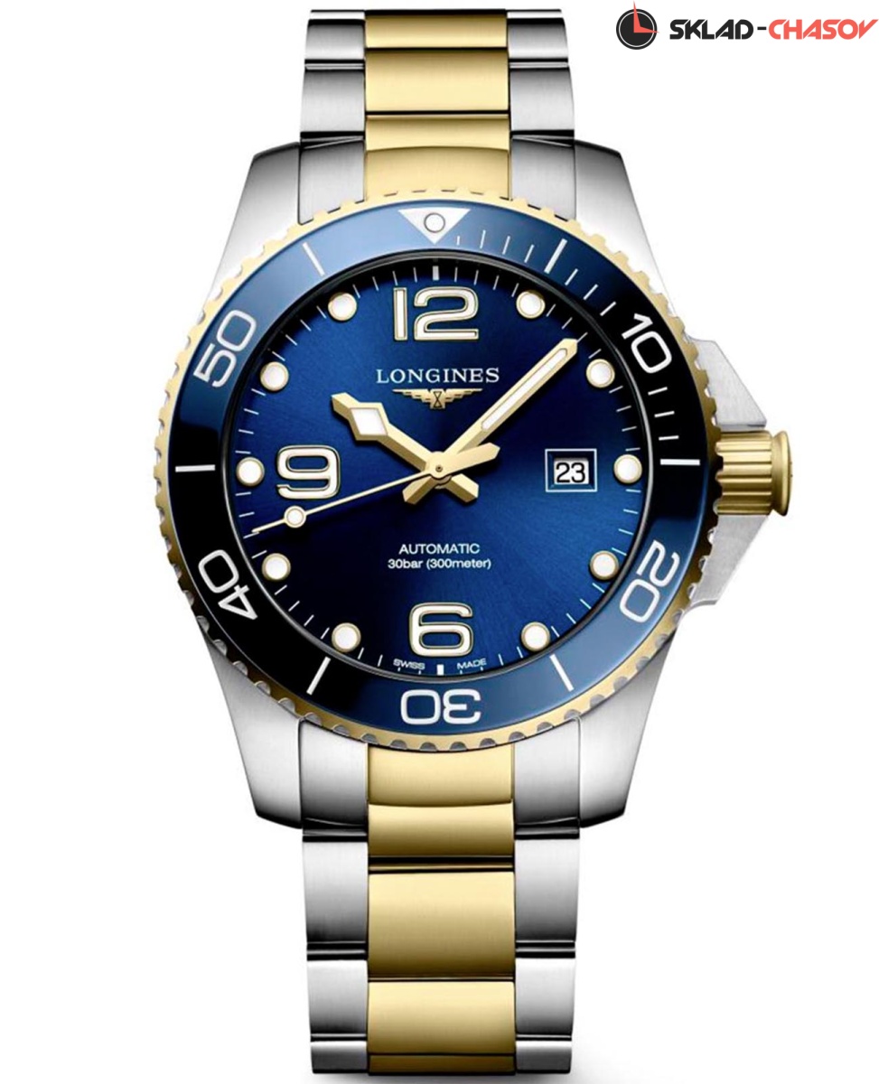 Мужские швейцарские механические часы для дайвинга Longines Hydroconquest L3.782.3.96.7. Сапфировое стекло с многослойным антибликовым покрытием с обеих сторон, устойчивое к появлению царапин, обладающее высокой прозрачностью. Корпус часов изготовлен из стали с PVD-покрытием. Вращающийся безель из стали с PVD-покрытием и керамики, защищенный от царапин, никогда не изнашивается и не выцветает. Стрелки и метки с люминесцентным покрытием. Окошко даты находится в положении 3 часов. Класс водозащиты: 300 метров, позволит плавать, нырять и заниматься другими водными видами спорта. Стальной браслет с PVD-покрытием на раскладной застёжке.