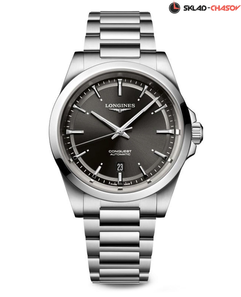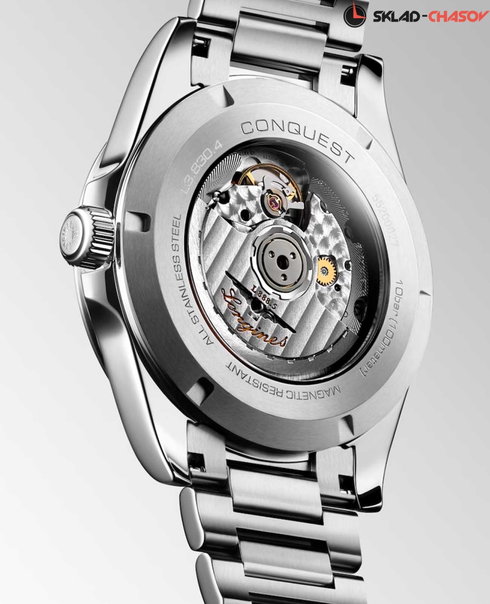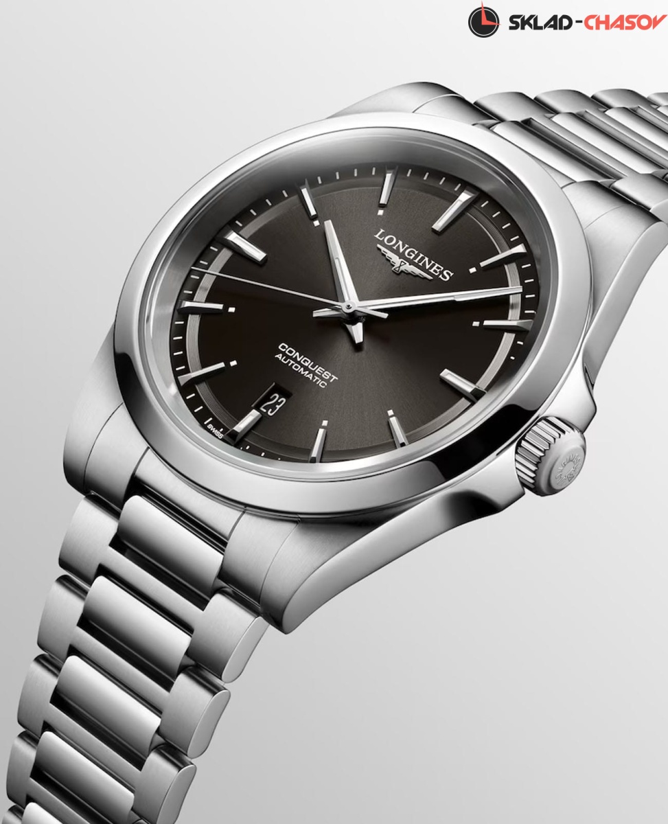 Longines Conquest Automatic (L3.830.4.52.6) — элегантные швейцарские часы, сочетающие классический дизайн и современные технологии. Корпус выполнен из нержавеющей стали диаметром 41 мм, придающим модели прочность и долговечность. Сапфировое стекло с антибликовым покрытием защищает циферблат от царапин и гарантирует превосходную читаемость.Чёрный циферблат с солнечным узором оснащён серебристыми стрелками и метками с люминесцентным покрытием Super-LumiNova, обеспечивающим отличную видимость в условиях низкой освещённости. Механизм L888 с 72-часовым запасом хода обеспечивает высокую точность и надёжность. Браслет из нержавеющей стали на застёжке-бабочке с кнопками и предохранителем гарантирует комфорт и надёжную фиксацию на запястье. Функциональность дополняется индикатором даты в положении "6 часов". Водонепроницаемость 100 метров делает модель подходящей для плавания и других водных активностей.
