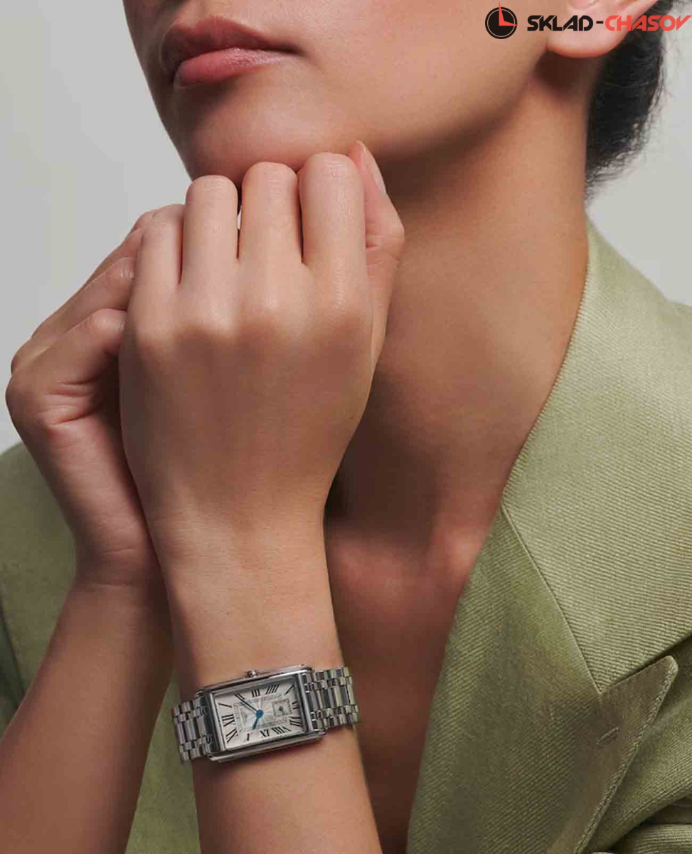 Корпус часов изготовлен из нержавеющей стали, что обеспечивает их долговечность и устойчивость к различным условиям эксплуатации. Метки на циферблате выполнены в виде римских цифр, что добавляет часам исторический акцент и уникальную элегантность. Класс водозащиты составляет 30 метров, что защищает часы от случайных брызг или капель дождя, делая их надёжными спутницами в повседневной жизни.