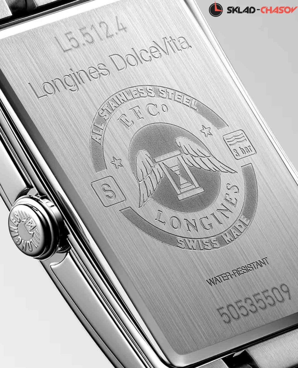 Женские швейцарские часы Longines DolceVita L5.512.4.75.6, кварцевый механизм с высокой точностью. Сапфировое стекло устойчивое к появлению царапин, обладающее высокой прозрачностью. Корпус часов изготовлен из нержавеющей стали. Метки в виде римских цифр. Малая секундная стрелка в положении 6 часов. Класс водозащиты: 30 метров, позволит защитить корпус от случайных брызг или капель дождя. Браслет из нержавеющей стали на застёжке «бабочка» с кнопками.