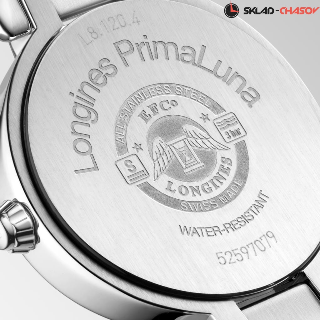 Женские швейцарские часы Longines PrimaLuna L8.120.4.71.6, кварцевый механизм с высокой точностью. Исключительно женственная коллекция. Сапфировое стекло устойчивое к появлению царапин, обладающее высокой прозрачностью. Корпус часов изготовлен из нержавеющей стали. Окошко даты в положении 3 часов. Класс водозащиты: 30 метров, позволит защитить корпус от случайных брызг или капель дождя. Стальной браслет на застёжке «бабочка» с кнопками.